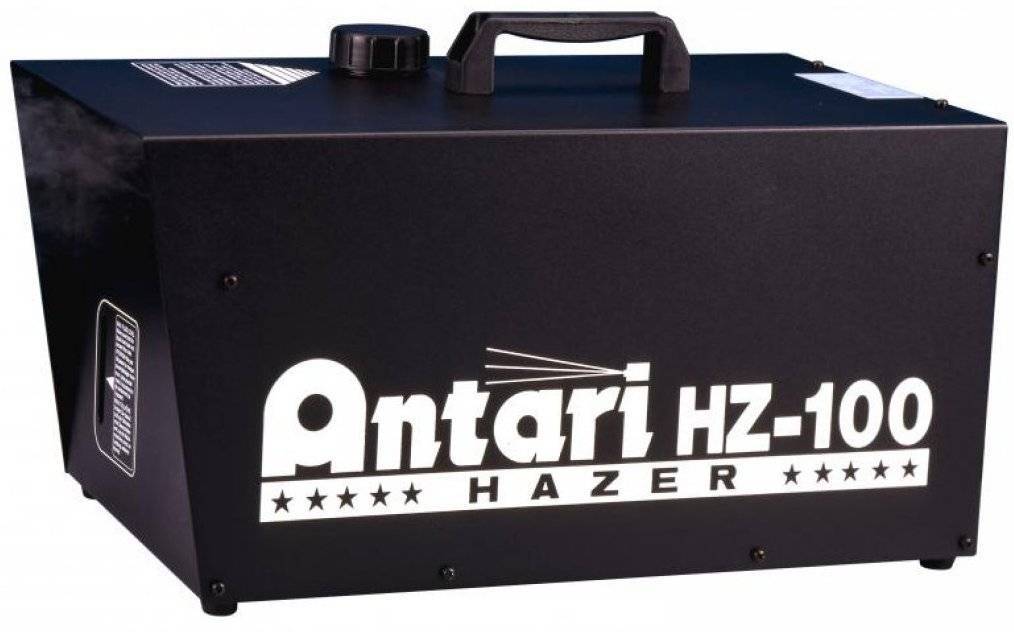 Hazer – это прибор, создающий довольно «тонкий» эффект прозрачной «долгоживущей» дымки, которая чаще называется – туман. С одной стороны эта дымка почти не мешает видеть происходящее на сцене даже с большого расстояния, с другой стороны, свет лазеров и других световых приборов в ней прекрасно «материализуется» в объёмные фигуры. Принципиальное отличие от дым-машины состоит в том, что Hazer не имеет термоэлемента, и аэрозоль распыляется воздухом, который подаётся в бак с невоспламеняющейся жидкостью под огромным давлением при помощи мощного компрессора. HZ-100 - прибор для клубных, концертных и театральных инсталляций. HZ –100 избавляет от всех проблем, традиционно связанных с дым машинами, так как обладает возможностью мгновенного запуска и длительной работы. HZ-100 прост в обслуживании и удобен в эксплуатации. Прибор абсолютно безопасен, так как его работы применяется специальная невоспламеняющаяся и нетоксичная жидкость для хейзеров. Для автоматического управления используют таймер HC-1, позволяющий задавать интервал и продолжительность работы (не входит в комплект поставки). Рекомендуемая жидкость для использования - Antari HZL-5, HZL-1.