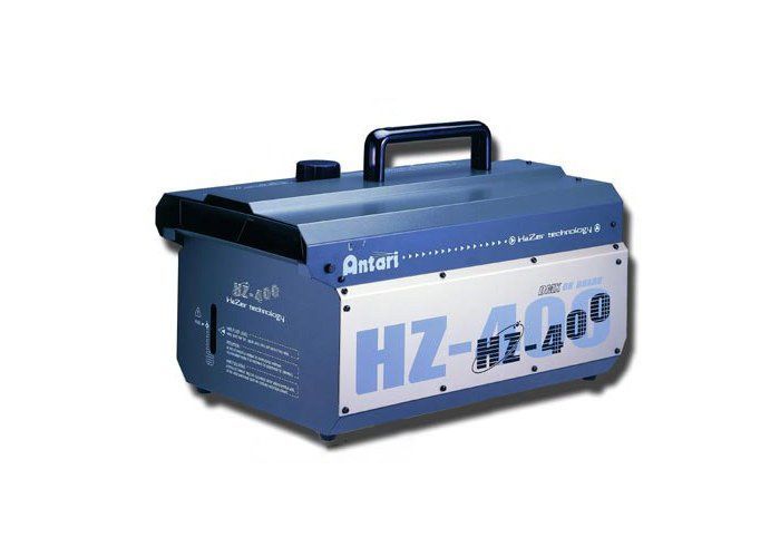 Antari HZ-400 Hazer – это прибор, создающий довольно «тонкий» эффект прозрачной «долгоживущей» дымки, которая чаще называется – туман. С одной стороны эта дымка почти не мешает видеть происходящее на сцене даже с большого расстояния, с другой стороны, свет лазеров и других световых приборов в ней прекрасно «материализуется» в объёмные фигуры. Принципиальное отличие от дым-машины состоит в том, что Hazer не имеет термоэлемента, и аэрозоль распыляется воздухом, который подаётся в бак с невоспламеняющейся жидкостью под огромным давлением при помощи мощного компрессора. HZ-400 – самый мощный прибор в этой серии. Компрессор закреплён таким образом, что не создаёт вибрации и шума. HZ-400 имеет возможность управления по DMX, а также посредством пульта дистанционного управления HC-1 или при помощи беспроводного пульта HCR-1.