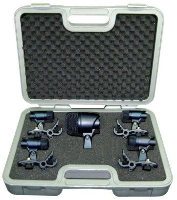 - Комплект микрофонов для озвучивания ударных инструментов с держателями в кейсе.