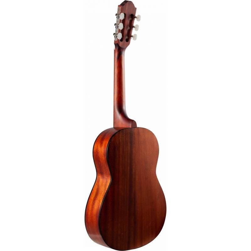 Верхняя дека классической гитары - это один из самых важных компонентов формирования звука инструмента. Ель (наряду с кедром) это традиционная древесина для изготовления качественных профессиональных инструментов. Ель обладает чистым, мелодичным звуком с огромным богатством обертонов. Корпус из красного дерева это также признак качественного инструмента.
