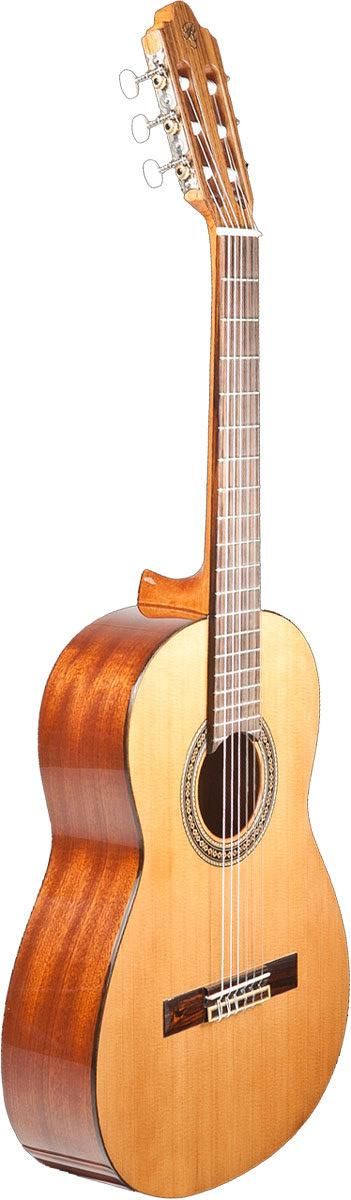 Высокое качество конструкции безупречно подходит для начинающих и не помешает прогрессу молодого студента, как это делают другие дешевые инструменты. Эта классическая гитара имеет мензуру 61 см и включает в себя топ из массива кедра, нижнюю деку из сапеле, гриф из Samanguilla, а также палисандровые бридж и накладку, плюс на никелированной планке колки.
