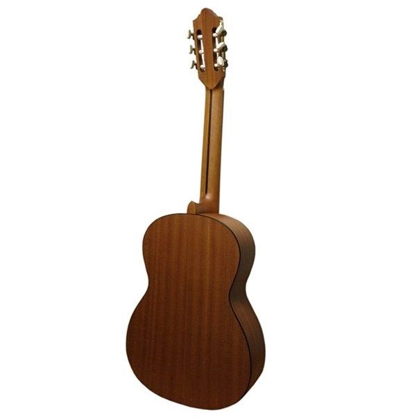 4655-7/8 Классическая гитара Strunal. Верхняя дека - ламинат ели, нижняя дека и обечайки - ламинат красного дерева, гриф: красное деоево, колкова механика - латуная, натуральная окантовка - красное дерево, нейлоновые струны, цвет - натуральный, гланцевый. Strunal