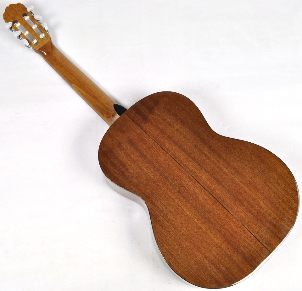 классическая гитара, топ из массива ели, цвет натуральный, нижняя дека и обечайка - махогани, верхняя дека - ель, гриф - махогани, накладка грифа - палисандр, 19 ладов, порожек - синтетическая кость, бридж - палисандр, мензура 25.6` (650 mm)