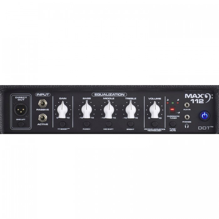 Комбоусилитель Peavey MAX® 112 рассчитан на 200 Вт мощности. Схема усиления сконструирована по схеме эмуляции лампового звучания TransTube®. Предусмотрен хроматический тюнер вход AUX выход на наушники и XLR-выход Direct Out.