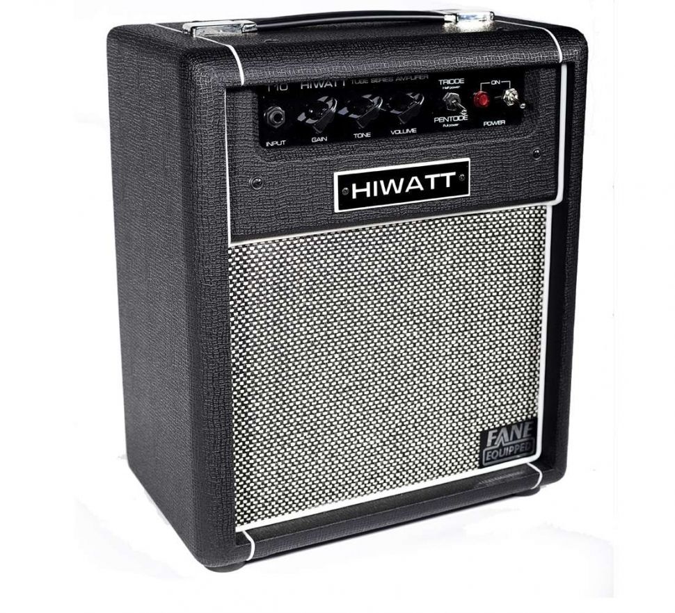 HIWATT T10 - это малыш ламповой линейки Т, 5-ваттный комбо с динамиком 10". У Вас могут быть свои предположения, как громко могут звучать 5 ватт, но Вы можете и ошибаться - в данном случае это реально громко! В нем даже предусмотрен аттеньюатор для ограничения мощности наполовину. Будьте осторожны - он кусается. Одна 12AX7 гнездится в предусилителе, а выход снабжен одной EL84.