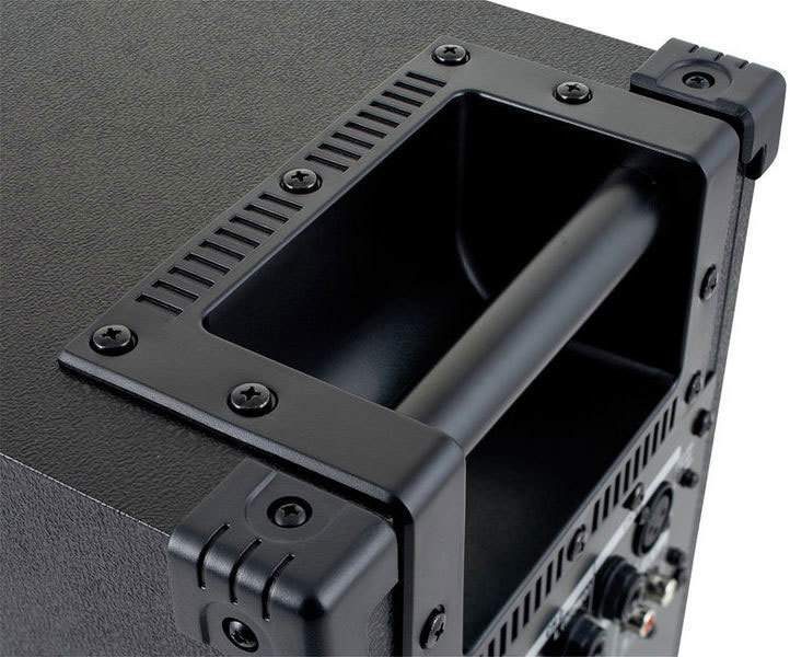 Крепкий компактный корпус с удобной ручкой и прочными уголками позволяет сколько угодно носить монитор с места на место металлическая сетка надежно защищает диффузор.