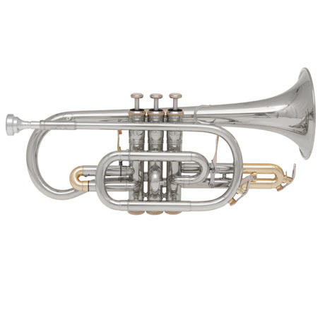 Строй: Bb Широкая мензура Высококачественный сплав латуни 80:20 Цельный раструб Вентили: Монель-металл Клапаны слива жидкости: 2 Эксклюзивная подмундштучная трубка Smith-Watkins Триггеры на первой и третьей кроне Отделка: Посеребренный В комплекте: Мундштук, футляр