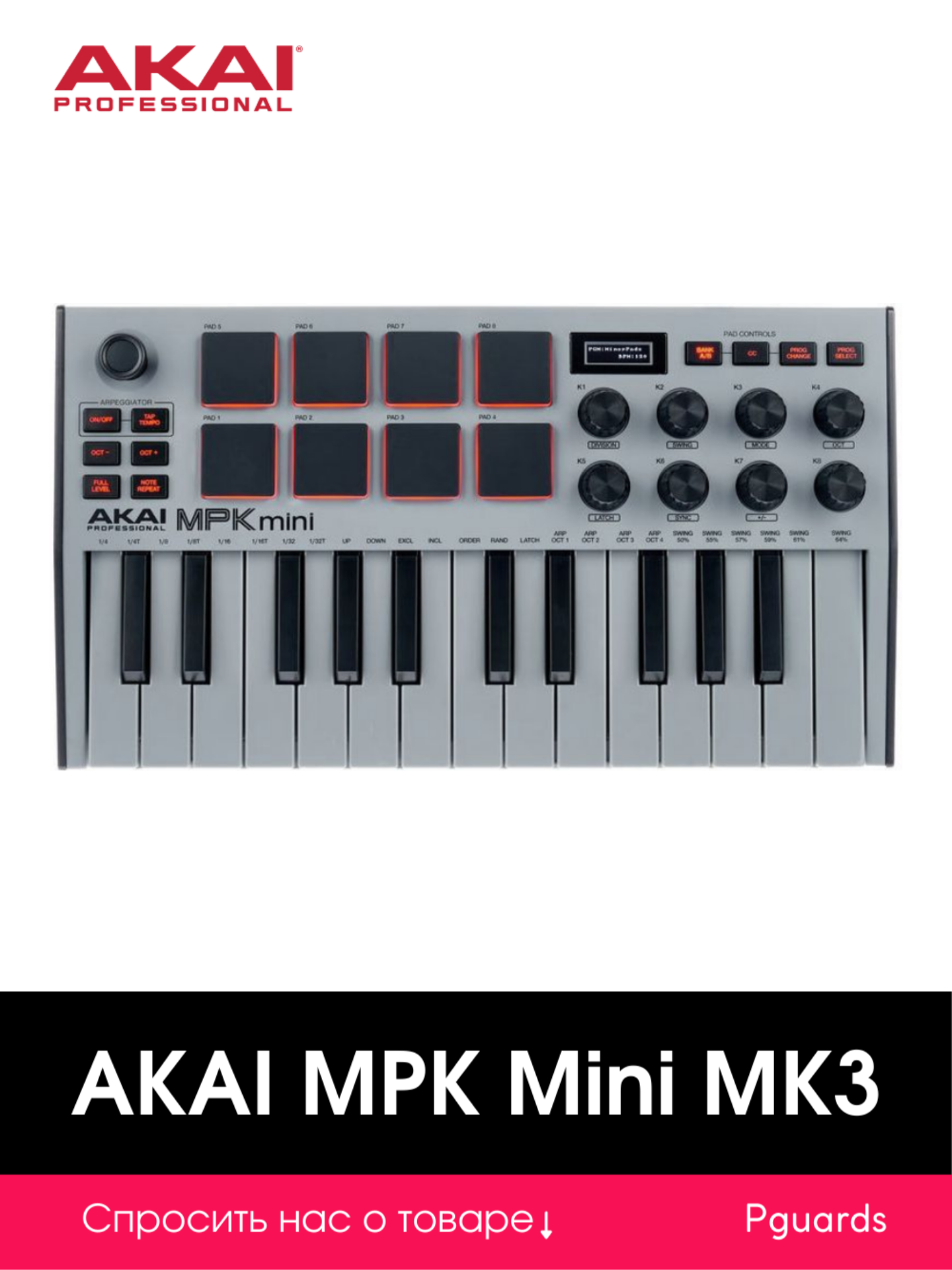 MIDI-клавиатура Akai Pro MPK Mini 3 Grey