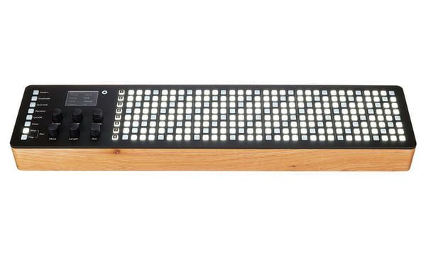 - управление: 8 кнопок функций, 6 энкодеров, 8 кнопок треков, 264 подсвеченные силиконовые кнопки шагов;