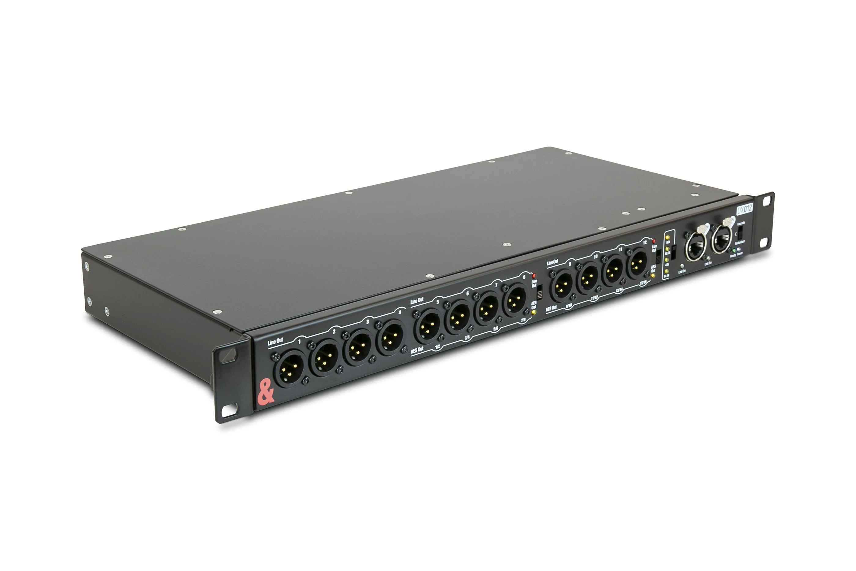 - 12 выходов XLR: 1-4 аналоговый выход, 5-8 аналоговый линейный выход или AES цифровой выход (переключаемый), 9-12 Аналоговый линейный выход или AES Цифровой выход (переключаемый)