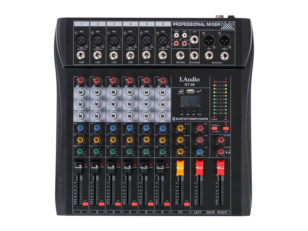 GT-06 Микшерный пульт, 6 каналов, серия PRO, цвет черный, от компании LАudio