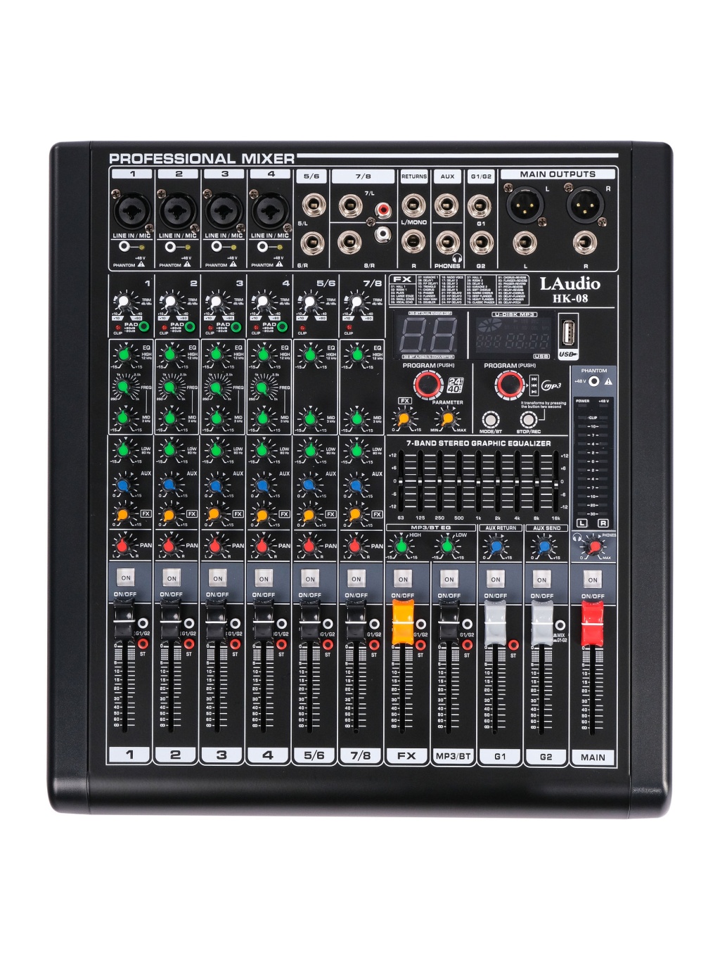 HK-08 Микшерный пульт, 8 каналов, серия PRO, цвет черный, от компании LАudio