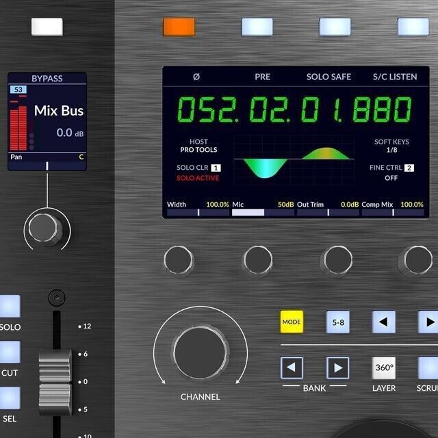 - Многофункциональный растеризованный мастер-кодер для удобной навигации по DAW, управления дорожками и эмуляции колесика мыши