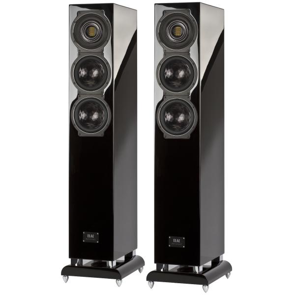 Напольные акустические системы ELAC FS 509 VX-JET компании ELAC имеют четырехполосную конфигурацию, и при высоте почти в полтора метра выглядят более чем солидно. Колонки оснащены двумя басовыми динамиками с 220-мм диффузорами AS-XR, одним среднечатотником с таким же диффузором, но диаметром 180 мм и одним фирменным ленточным СЧ-излучателем, а также ленточным твиттером JET III. Корзины всех динамических головок изготовлены из алюминия методом литья под давлением, и обладают отличными антирезонансными свойствами.