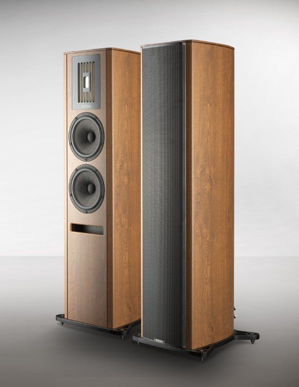 Два излучателя ScanSpeak 18W/8531, на целлюлозных диффузорах которых размещены узнаваемые радиальные насечки, отвечают за воспроизведение низких частот. В качестве гриля традиционно используется металлическая перфорированная пластина. Изготовлены колонки в Швейцарии.