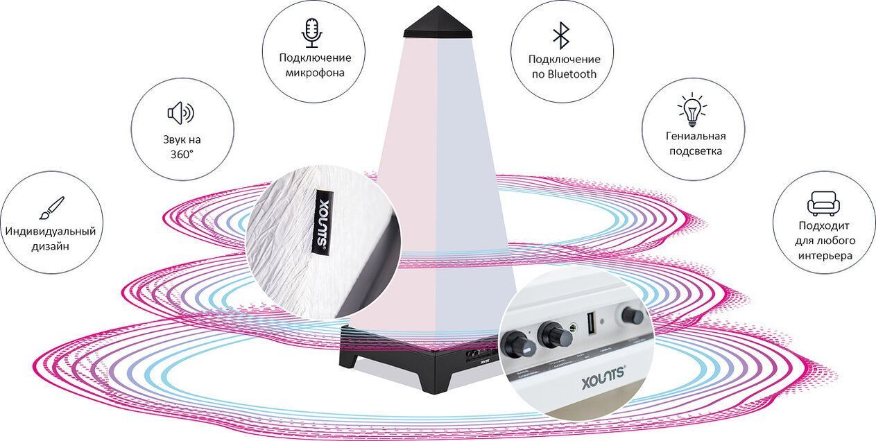 Стильные дизайнерские чехлы и подсветка обеспечивают желаемую атмосферу. Специальный защитный чехол позволяет использовать XOUNTS на улице даже во время дождя.