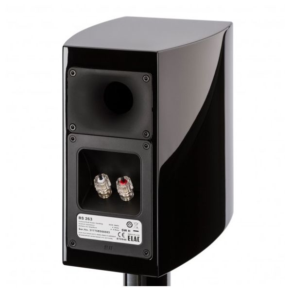 Корпус акустической системы имеет глубокое внутреннее демпфирование и усилен специальными стяжками. Для борьбы с внутренними стоячими волнами и дополнительного повышения общей жесткости конструкции боковые стенки колонки сделаны покатыми. Защитная сетка изготовлена из акустически прозрачной ткани и имеет невидимую магнитную фиксацию. Внешняя отделка ELAC BS 263 может быть выполнена черным или белым рояльным лаком, или черным матовым лаком.