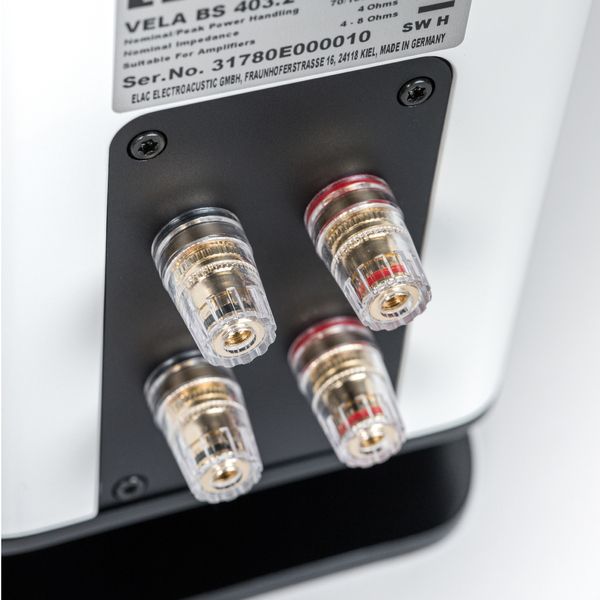 Полочная акустическая система ELAC Vela BS 403 получила точно рассчитанный кроссовер, в цепях которого используются высококачественные элементы. Доступно двухпроводное подключение. Для его реализации модель оснащается двумя парами винтовых клемм с позолоченными контактными поверхностями.