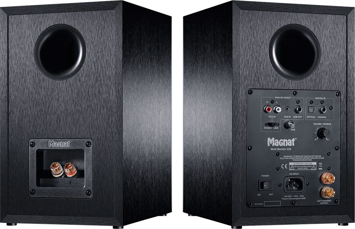 Magnat Multi Monitor 220 активная мощная акустическая стереосистема с Bluetooth и входом звукоснимателя Magnat Multi Monitor 220 объединяет в себе классический подход к высокой достоверности звуковоспроизведения и современное потоковое воспроизведение музыки. Этот высококачественный активный стереокомплект имеет фонокорректор для проигрывателя виниловых дисков со звукоснимателем типа ММ и наряду с наличием дополнительных аналоговых и цифровых входов поддерживает подключение по Bluetooth с кодеком aptX. В итоге ваша коллекция винила раскроет свой потенциал по-настоящему, и вы сможете получать удовольствие не только от нее, но и от цифровой музыки в высоком разрешении со смартфона, ноутбука или планшета даже в полностью беспроводном режиме.