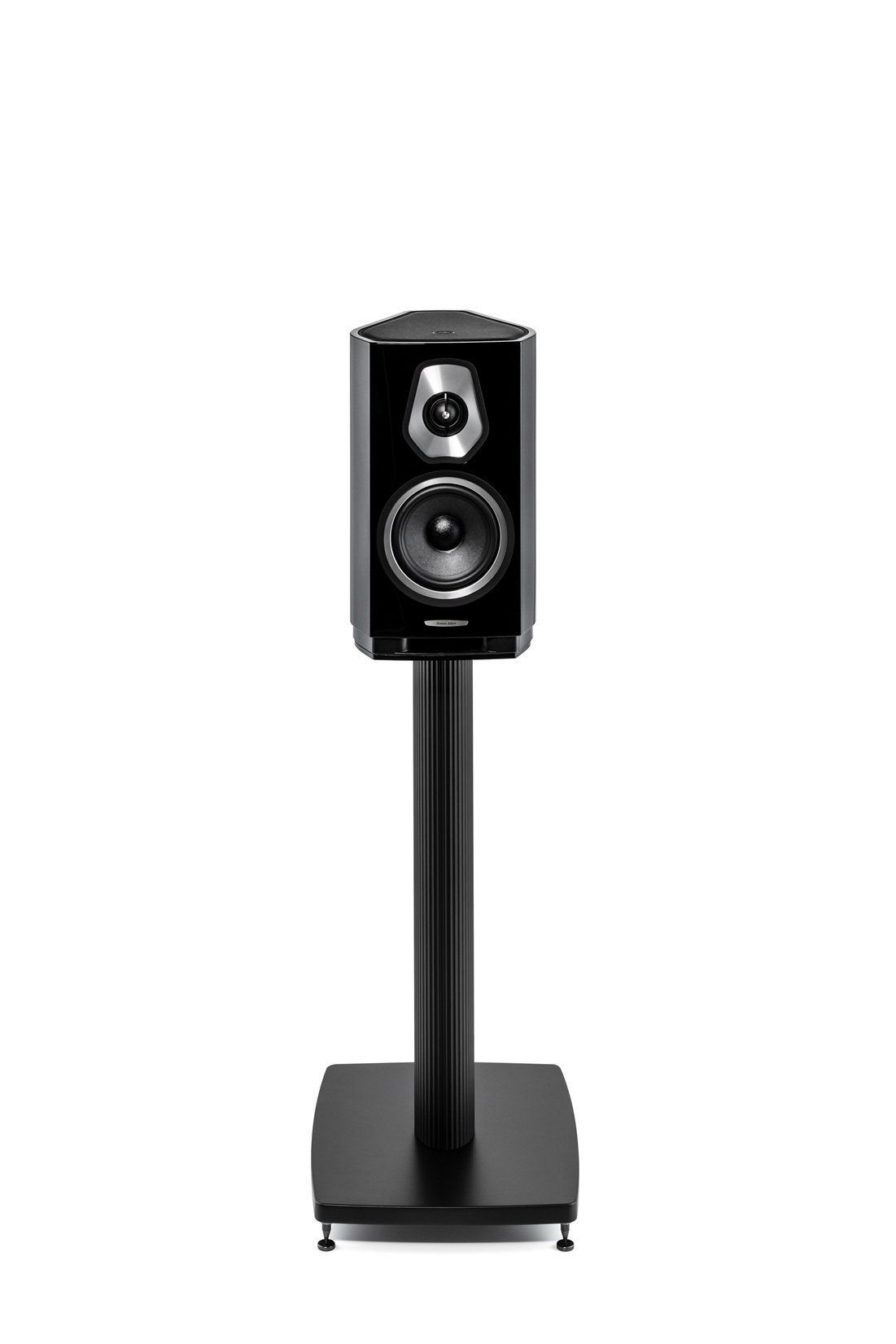 Sonus Faber Sonetto I Black, Благодаря новому порту фазоинвертора в основании Sonetto I может звучать от впечатляющих для полочных колонок 45 Гц и при этом выдержать до 150 Вт подводимой мощности. А еще их можно поставить близко к стене без ущерба для качества звучания. Сами АС рассчитаны на установку или на полку, или на специальные стойки, которые в версии от Sonus Faber выполнены из цельного куска алюминия.