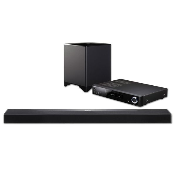 Ресивер обладает пятидесятиваттными усилителями и подключается к саундбару посредством единственного кабеля через соответствующий интерфейс, т.е. запутаться в проводах не получится. Саундбар может крепиться к стене и имеет по паре динамиков для каждого фронтального канала и для центрального канала, а также два драйвера, которые, по сути, заменяют потолочные динамики. Для любителей баса инженеры Onkyo заботливо добавили беспроводный сабвуфер, который можно разместить, фактически, в любой точке комнаты (на расстоянии до десяти метров от системы).