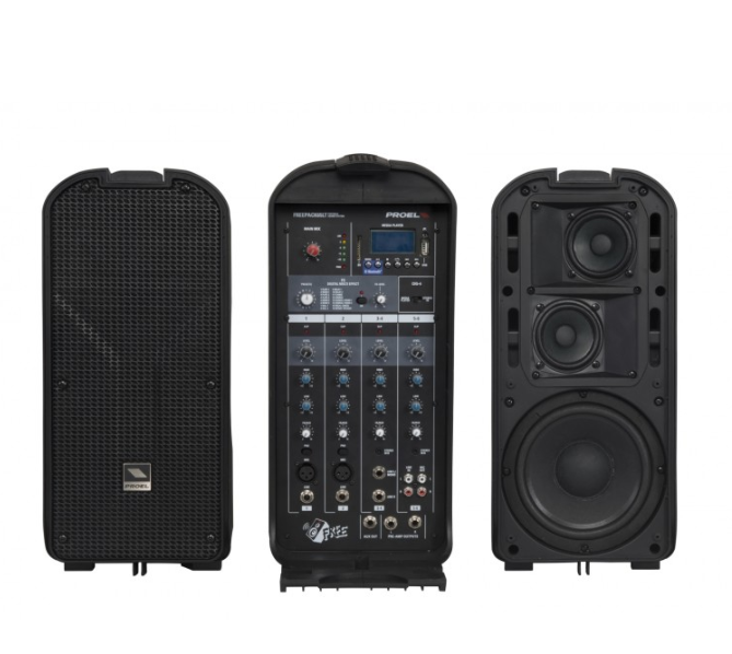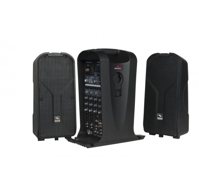 Proel FREEPACK65LT 2-полосная портативный комплект АС с аккумулятором, с 6-канальным микшером. Мощность: 2 х 75 Вт (усилители class D). Микшер: 2 входа mic/line моно + 2 line стерео. USB/SD-плеер с LCD-дисплеем . Динамики: 2 x (1"+2x3"+2x6,5") Диапазон воспроизводимых частот: 90 Гц - 20 кГц . Обработка: 2-полосный EQ, DSP (16 цифровых эффектов). Соединительные провода: в комплекте. Вес: 17 кг.