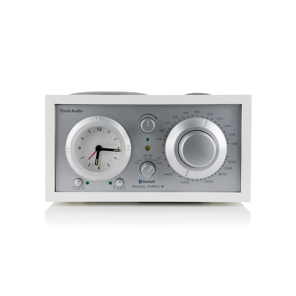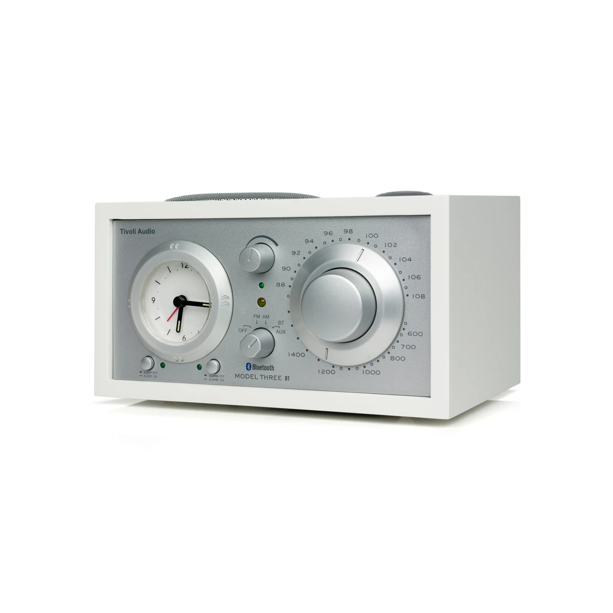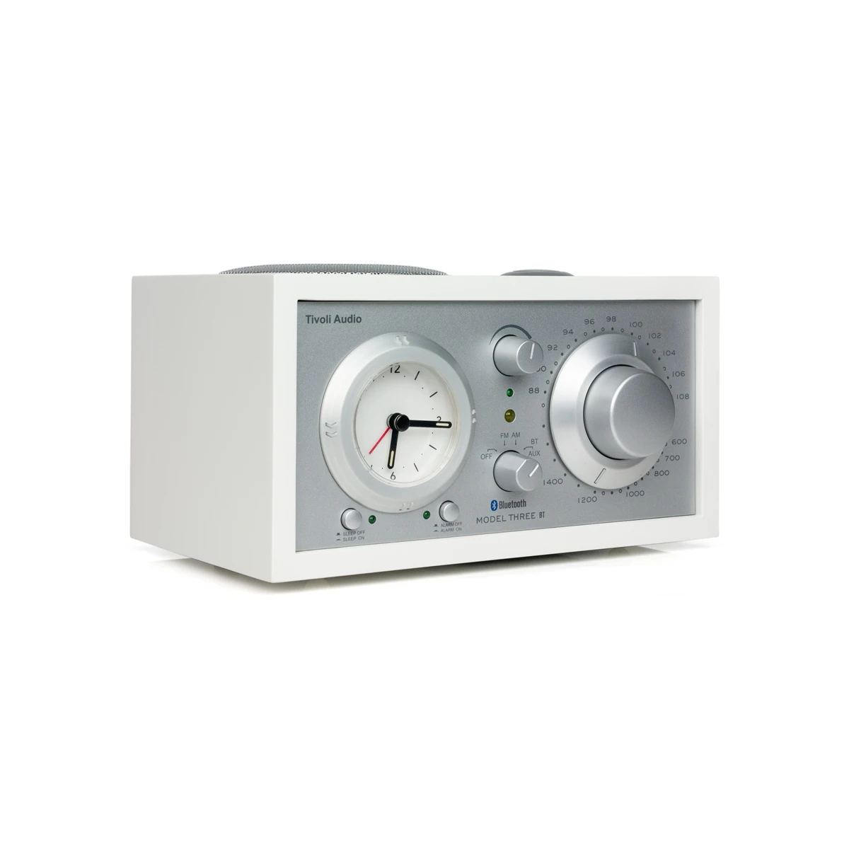 Tivoli Model Three BT идеально сочетает стиль и звук модели One с аналоговой схемотехникой и с добавлением классических аналоговых часов. Часы были разработаны для простой настройки и использования, они слегка подсвечены, чтобы вы могли видеть их ночью. Единственный монофонический динамик с расположением на верхнем торце обеспечивает настоящую художественную форму аналогового звука. Драйвер с длинным ходом с тяжелым магнитом соединен со схемой формирования контура частоты, которая автоматически регулирует выходной сигнал с шагом в полоктавы, что обеспечивает музыкально точный тональный баланс и басовую характеристику. Одна ручка предназначена для источника питания, одна ручка для громкости, одна ручка настройки радио с соотношением 5:1, что поможет вам настроить даже при самом слабом приёме радиостанции. Часы можно настроить с помощью безеля, а установка часов, отсрочка и таймер сна настраиваются простым нажатием кнопки. Используйте встроенный дополнительный вход для прослушивания музыки с внешнего источника звука. Зарядите свой смартфон или планшет с помощью встроенного USB-разъема.