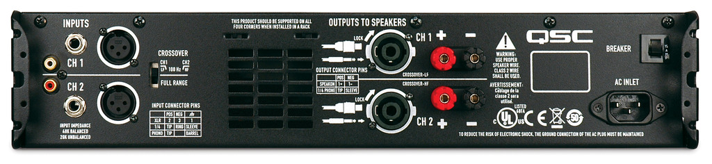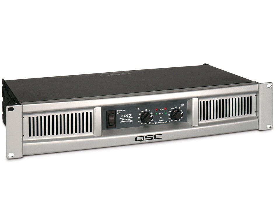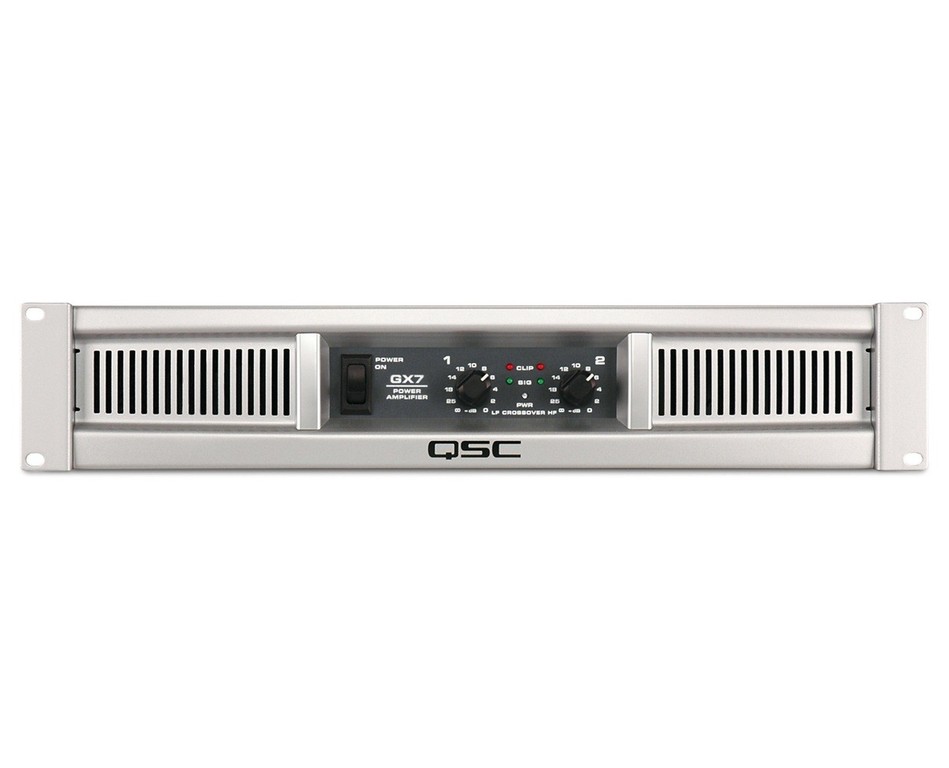 Бюджетная серия GX усилителей QSC разработана для профессионального использования. Одной из характерных особенностей серии является наличие встроенного кроссовера, позволяющего при необходимости использовать один канал для саттелита (выше 100 Гц), а второй для субвуфера (ниже 100 Гц). На задней панели три типа входных рахъёмов – XLR, TSR и RCA. Высота – 2U.