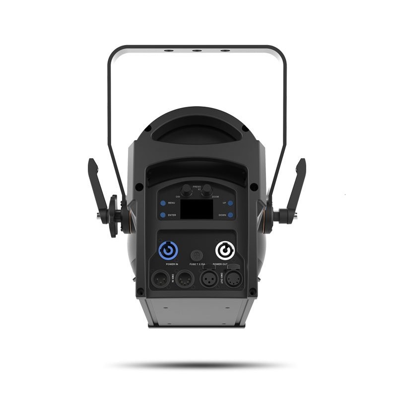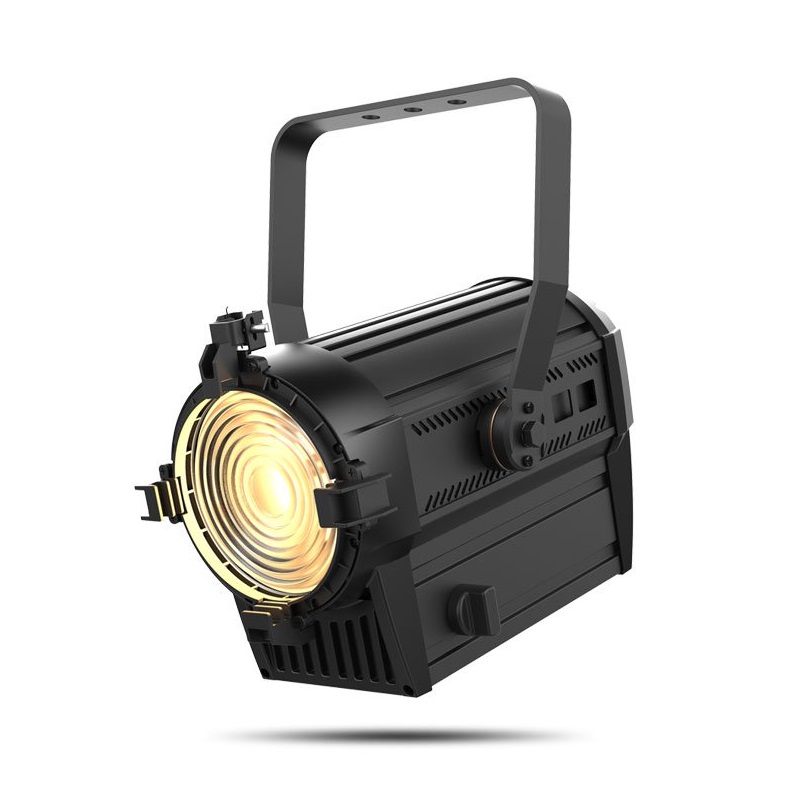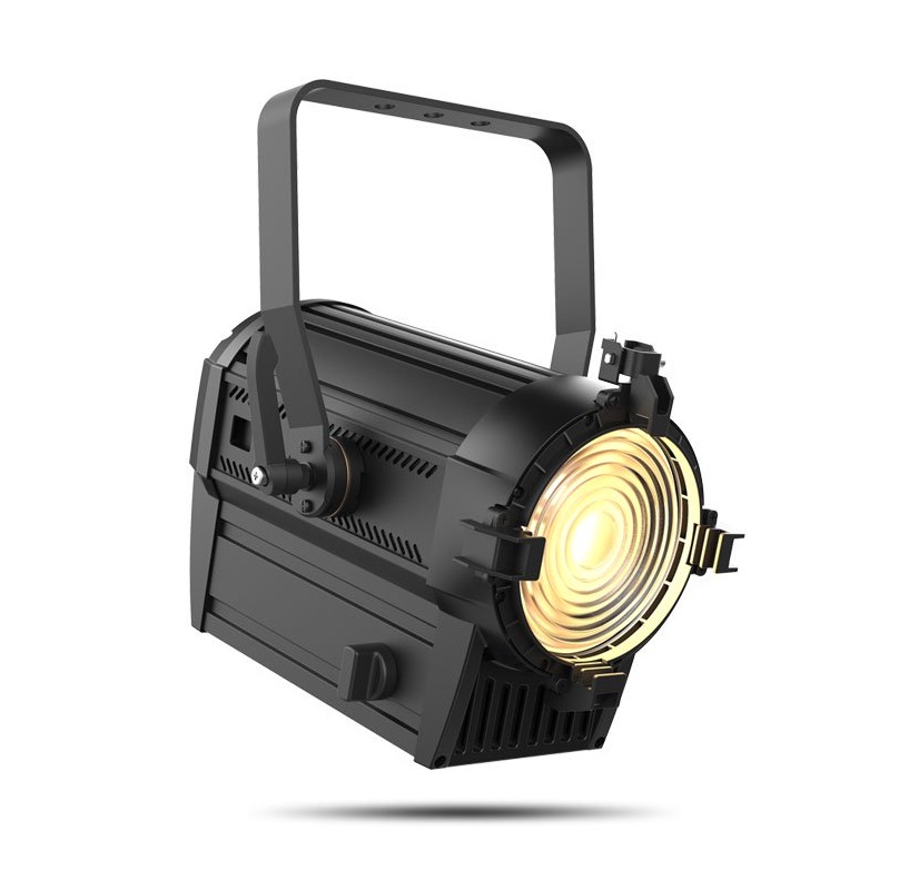светодиодный прожектор направленного света с линзой френеля. 1х80Вт WW LED, 1/2/3 каналов DMX, ручной ZOOM с передачей червячного типа, угол раскрытия 14-64град, температурность 3197К, яркость в 5м. зоне 6609лк с углом 14 (340 с углом 64), режим управления от диммерного канала, 5 режимов эмуляции энертности ламп, регулируемый PWM, режим стробоскопа 0-25Гц, CRI=91, XLR 3+5pin, PowerCon IN+OUT, PowerLink до 25 приборов, универсальный блок питания 100-240В, потребление до 125Вт, вес 5.9кг, ДШВ 325х