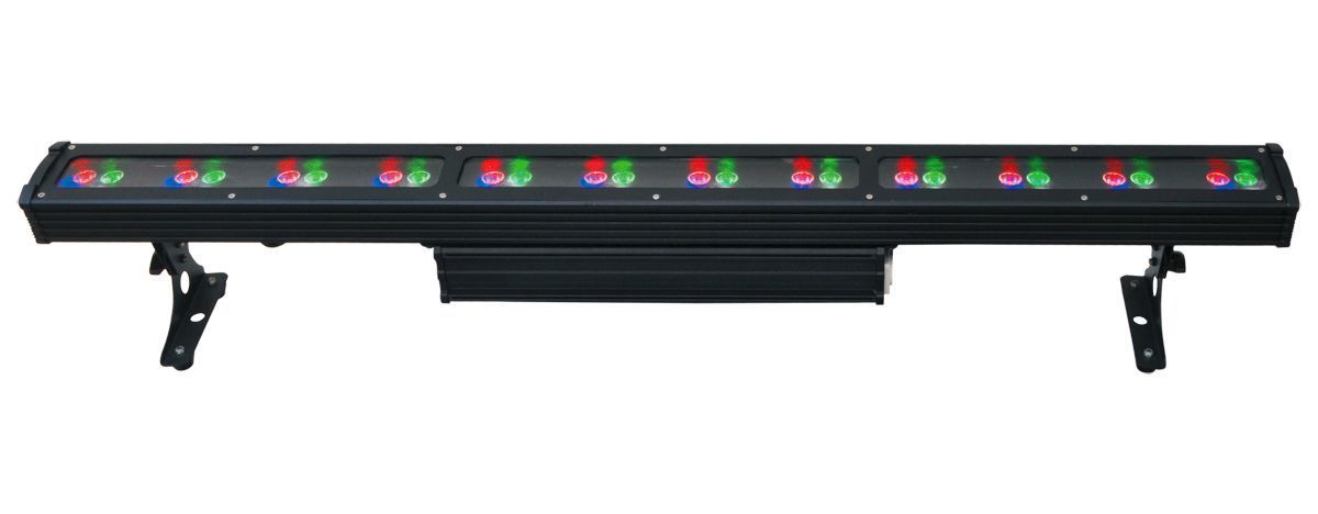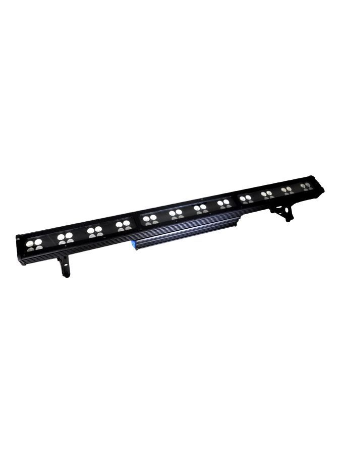 Прожектор, 48 светодиодов (12R+ 12G + 12B +12W). Электронный диммер 0-100%. Строб. Угол луча 25°. Управление: DMX512, звуковая активация, автоматический режим, master/slave. Питание: AC100-240V 50-60HZ. Габариты: 990*120*145 мм, вес:5,7 кг.