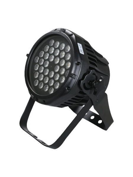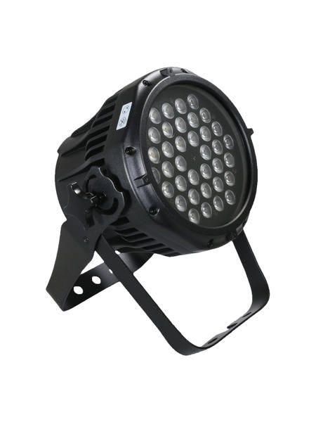 Прожектор, 36 LEDs (18C + 18W). Электронный диммер 0-100%. Строб. Угол раскрытия луча 20°/30°/40°. Управление: DMX512, автоматический режим, master/slave.