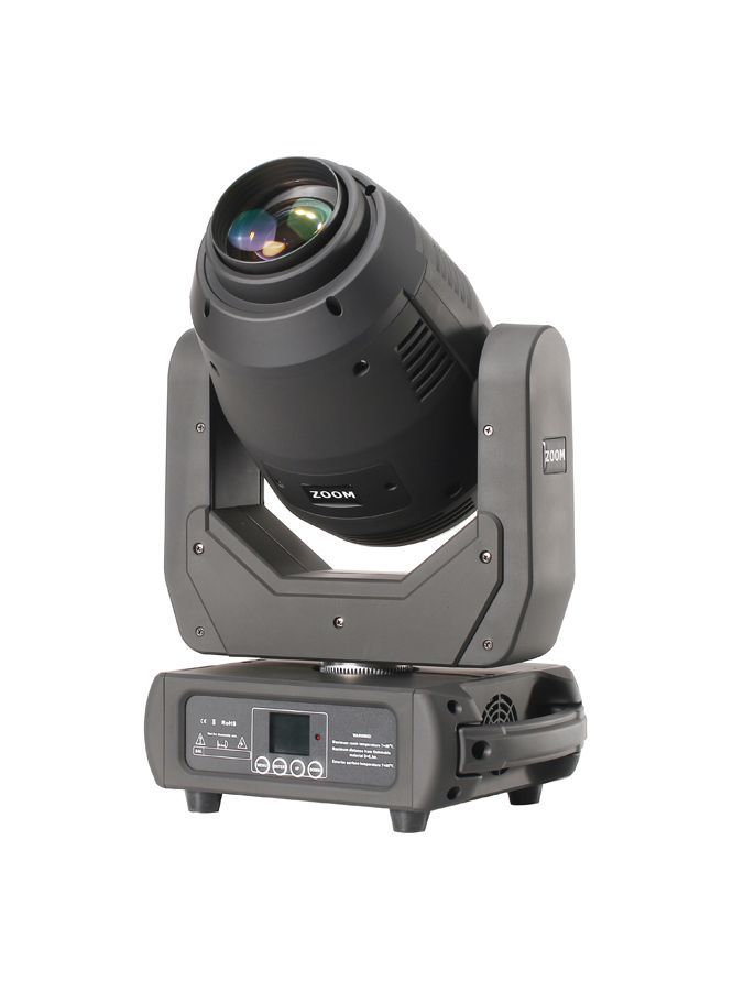 Прожектор Led spot 250MH Zoom. Вращающаяся голова Spot, светодиод 250 Вт. Изменяемый угол раскрытия луча от 5,5 до 30 градусов. 7 цветов + белый, 7 вращающихся , стеклянных гобо + 1 открыток, 8 статичных гобо + открытая позиция.Призма 8 граней. Фрост фильтр. Pan 540° Tilt 270°. Электронный диммер 0-100%, строб.