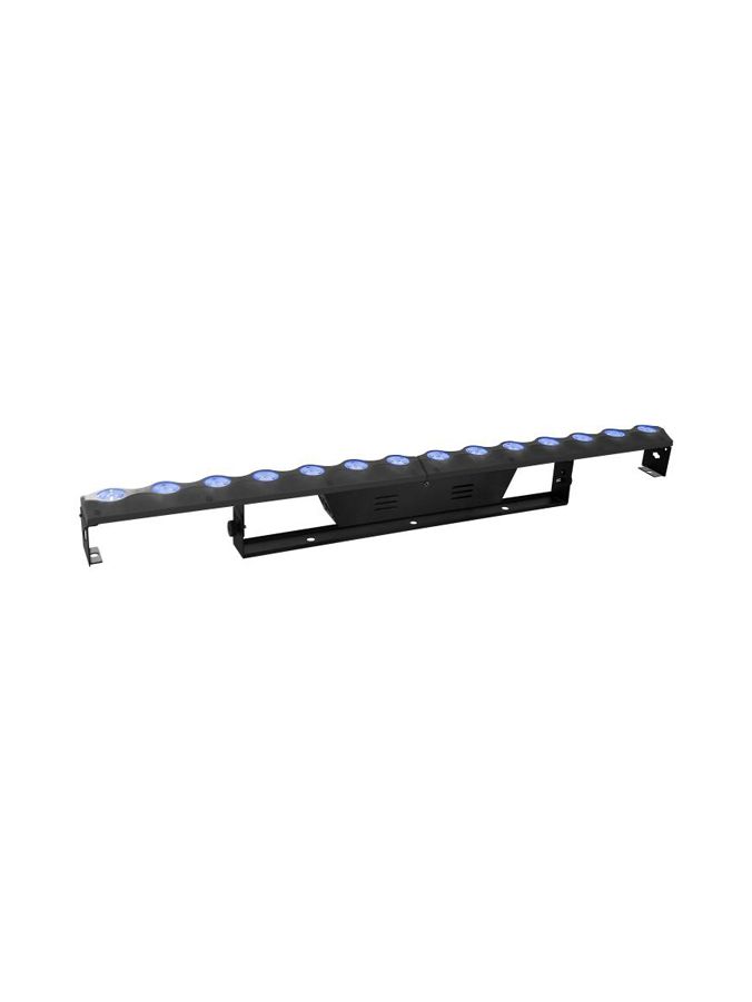 Светодиодный прожектор. Источник света 14 шт по 3В CREE диоды с цветовой температурой 2600 К. Угол раскрытия луча 4 градуса. Управление Dmx 512: 6/9/51, встроенные программы. Диммер, стробирование. Потребление 80 Вт. Пассивное охлаждение. Габариты 1050х105х80 мм. Вес 4 кг.