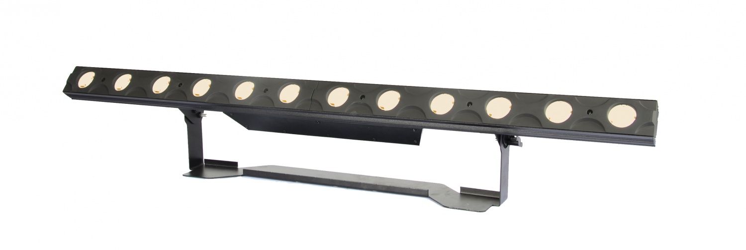 LED Sunstrip Светодиодный прожектор. Источник света 12шт по 3В CREE XPE диоды с цветовой температурой 2800К. Угол раскрытия луча 4,5 градуса, ореол 7 градусов. Управление Dmx512: 1/2/4/12/14/16, встроенные программы. Пассивное охлаждение. Габариты 1000 х 120,5 х 190мм. Вес 3,6кг