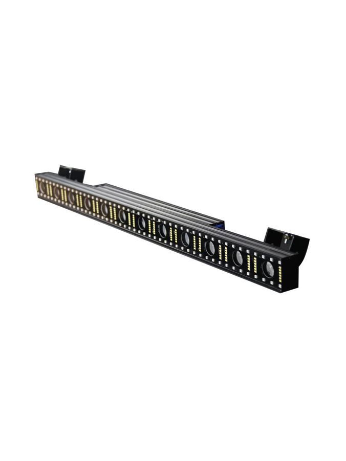 Vertus Светодиодный эффект. Источник света 12 шт диодов Cree WW по 5 Вт каждый, 84 шт по 0,5 Вт W и 160 шт SMD(5050) RGB. Управление Dmx512: 2/5/48/51, встроенные программы. Потребление 105Вт. Габариты 1000 x 60 x 190 мм. Вес 4 кг. Мастер-упаковка: 4 прибора (2+2).