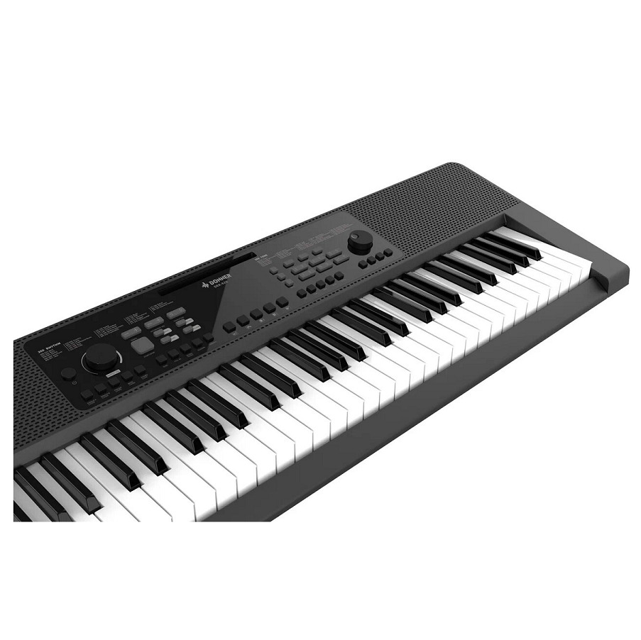 Donner Dek-620 отлично подходит как для новичков, так и для людей с некоторым опытом, поскольку имеет встроенную обучающую функцию и большой выбор тембров и ритмов с автоаккомпанементом, а также великолепные эффекты и интеллектуальные функции. Синтезатор может работать, как от сети так и от батареек