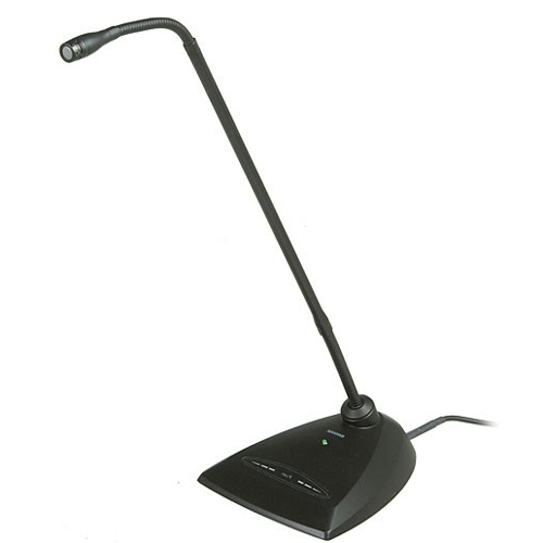 Shure MX418D/S – стильный и качественный конденсаторный микрофон от известной компании SHURE, разработанный специально для проведения семинаров, конференций, лекций и других подобных мероприятий. Благодаря суперкардиоидной диаграмме направленности он позволяет достичь высокой четкости и разборчивости речи, а также прекрасного звучания даже в довольно больших аудиториях. Микрофон с легкостью справляется с нагрузкой до 122 дБ, а его электретно-конденсаторный капсюль обеспечивает плавный частотный отклик в диапазоне 50 Гц - 17 кГц. При этом эффективно минимизируются фоновые шумы и практически устраняется эффект обратной связи. Встроенная электроника позволяет работать от фантомного питания 11-52 В, получаемого от микшера или усилителя, а удобный держатель типа «гусиная шея» длиной 457 мм дает возможность пользователю максимально удобно расположить микрофон. Устанавливается микрофон в настольную базу с встроенным кабелем 3 м. Такая конструкция обеспечит быструю установку и настройку прибора в местах где стационарная установка нецелесообразна. Кроме того прибор оборудован программируемой кнопкой включения/выключения с индикатором и клеммами для удаленного управления.