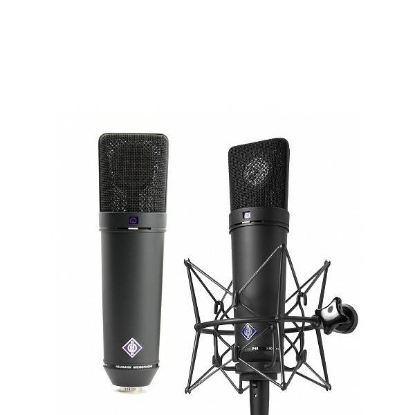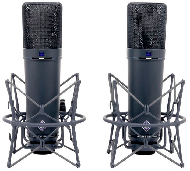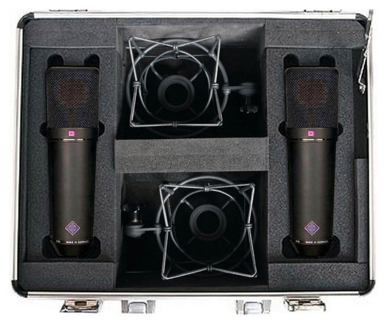 Набор, включающий пару студийных универсальных конденсаторных микрофонов U 87 Ai mt компании NEUMANN, пару эластичных подвесов типа «паук», противопыльный чехол и алюминиевый транспортировочный кейс.