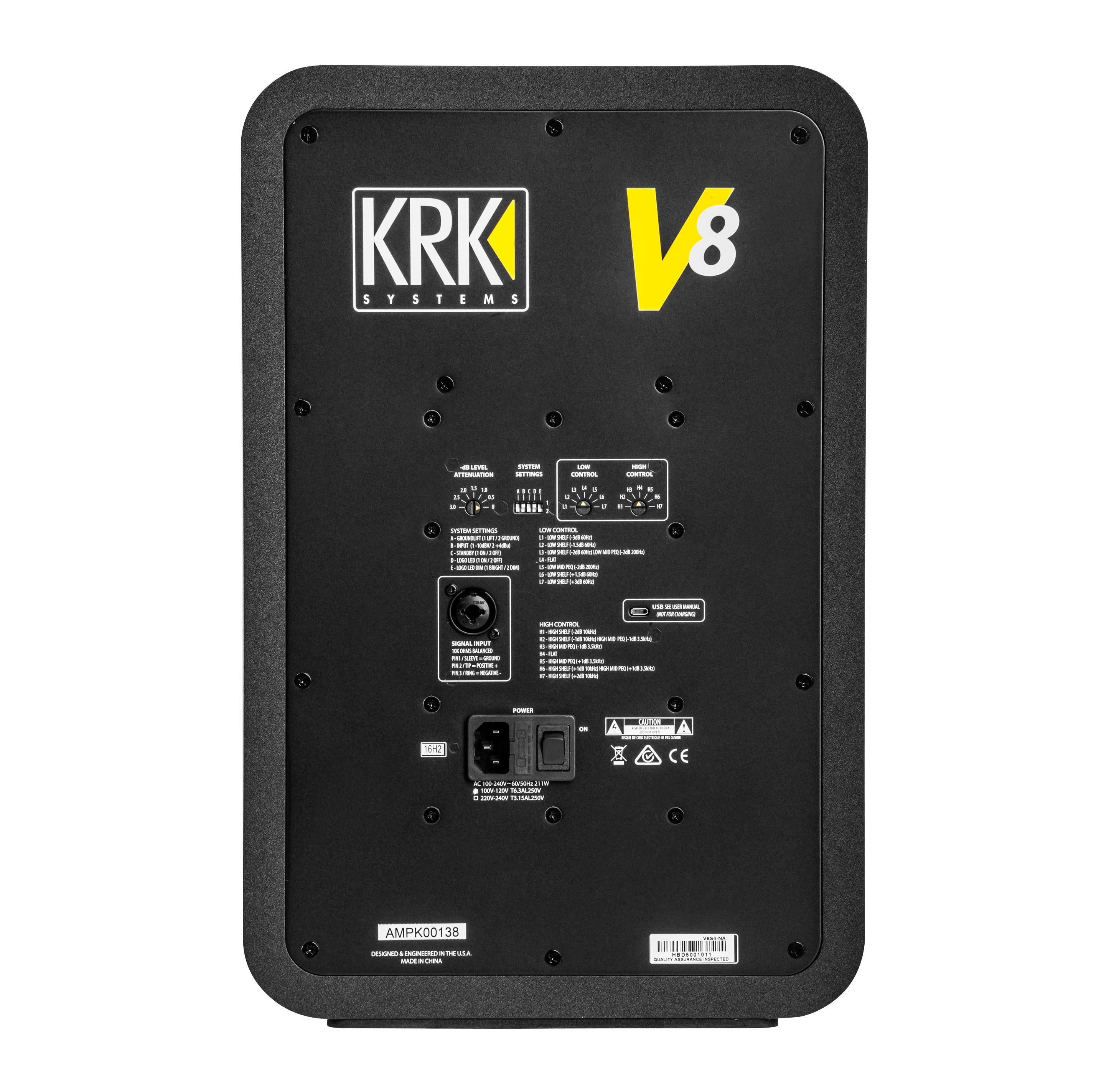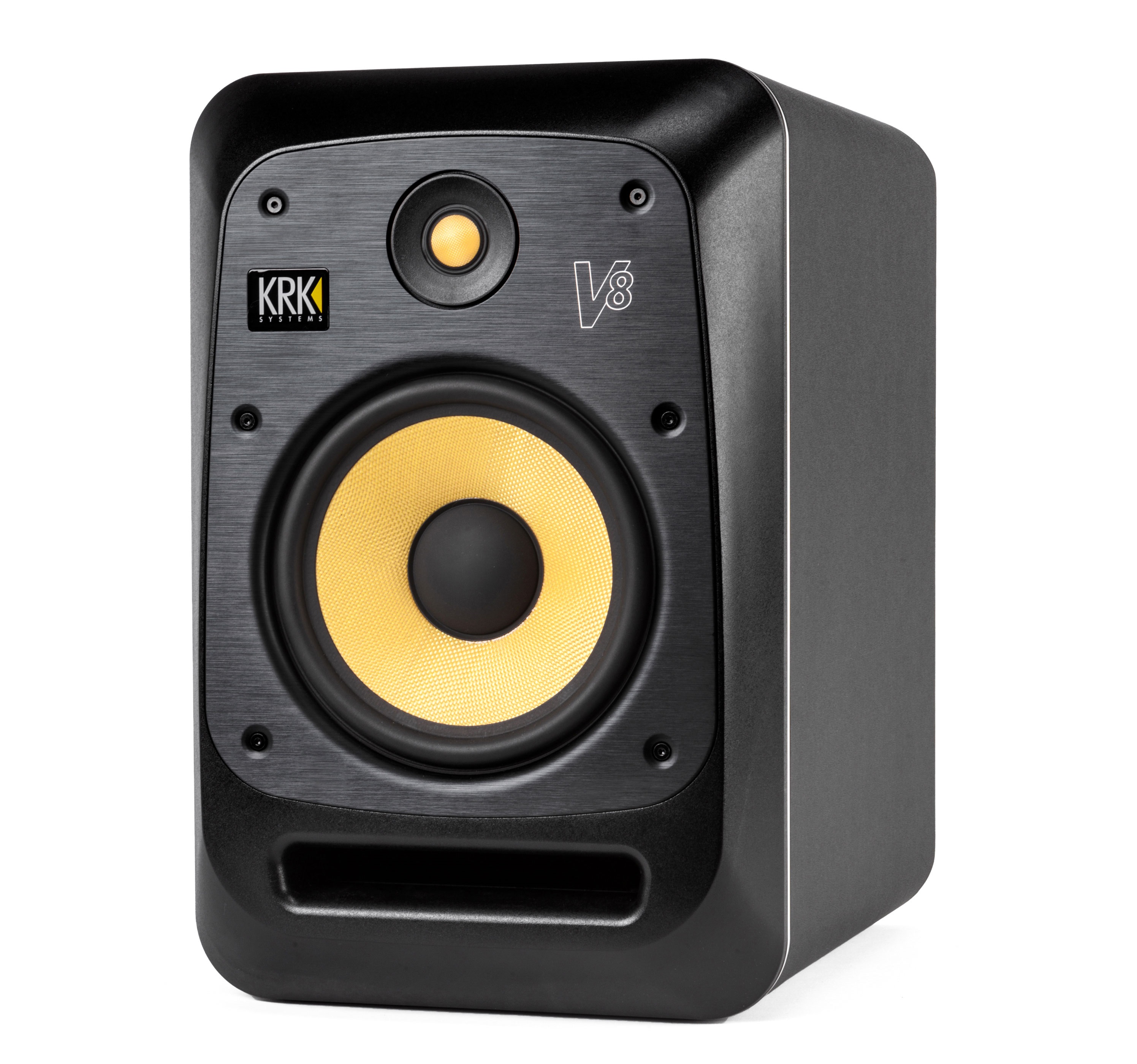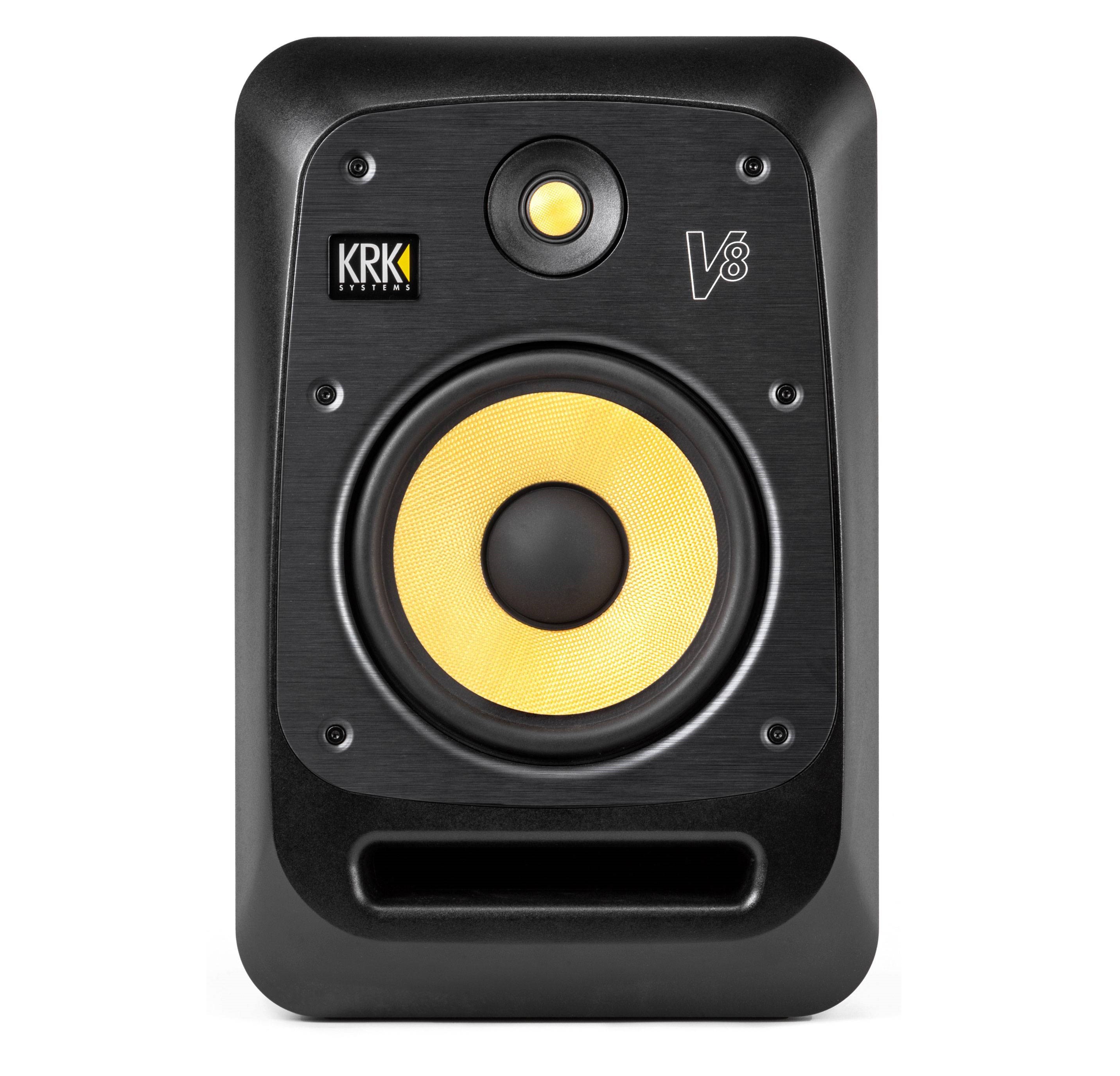 В KRK V8S4 используются динамические головки собственной разработки: 25-миллиметровый твитер с кевларовым куполом и НЧ/ВЧ-излучатель с литой алюминиевой корзиной и диффузором из тканого кевлара, диаметр которого составляет 8 дюймов. Каждый динамик подключен к отдельному усилителю класса D. Корпус мониторов выполнен из МДФ, а передняя панель – из алюминия. В основе монитора лежит схема с фазоинвертором, порт которого вынесен на лицевую панель.