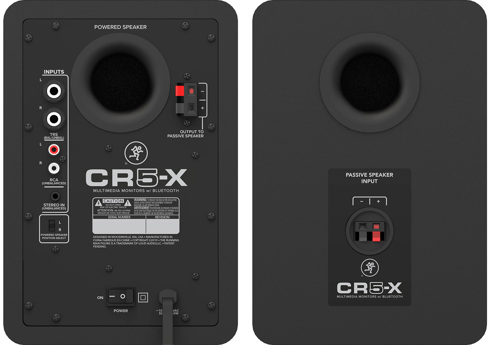 Mackie CR5-X – пара 2-полосных активных студийных мониторов, мощностью 80 Вт с 5-дюймовым вуфером, 0,75-дюймовым твитером, входами TRS на 1/4", 1/8" и RCA.