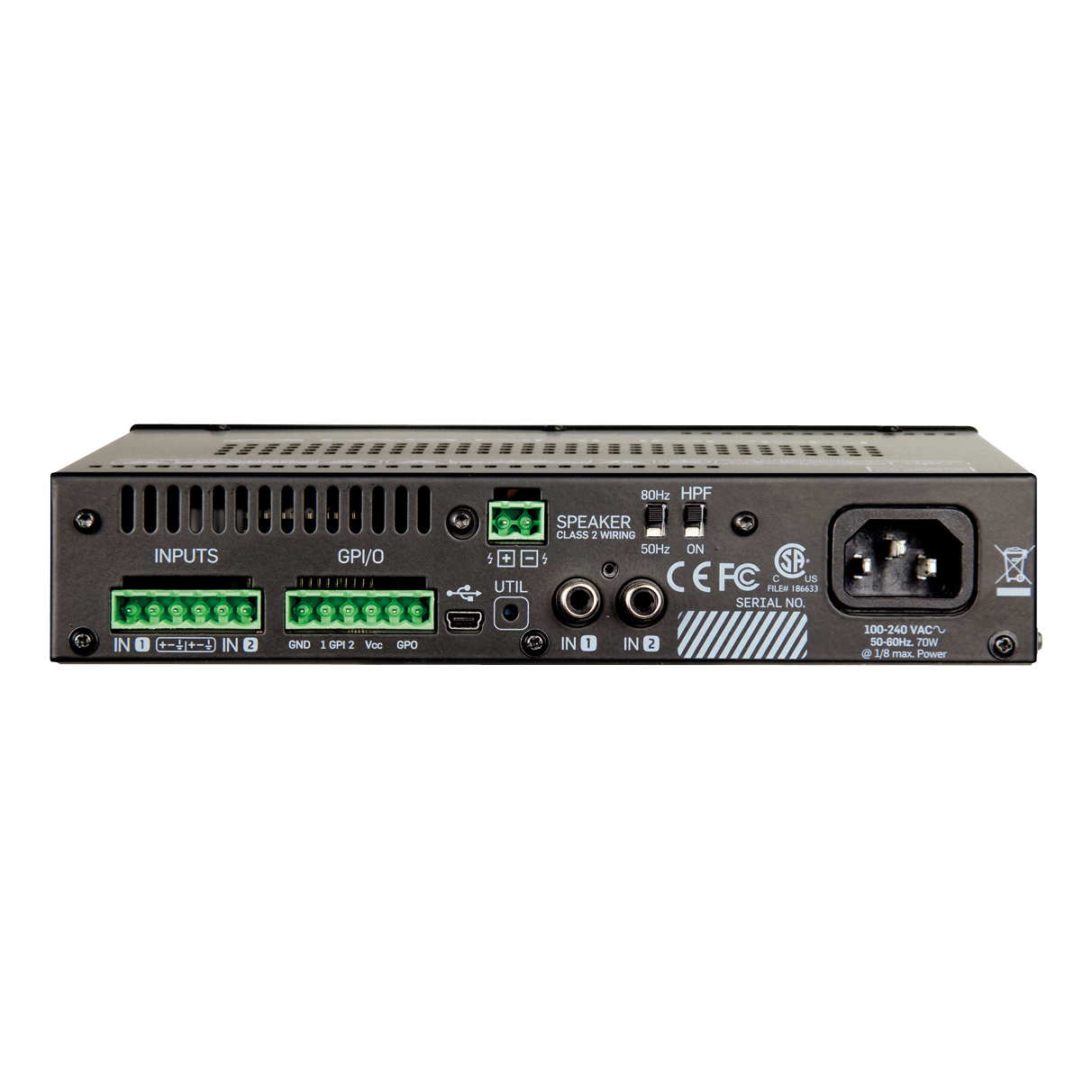 Усилитель инсталляционный, класс D, 1 канал, встроенный DSP, 70 В/60 Вт, 100 В/30 Вт, 16 Ом/60 Вт, GPIO