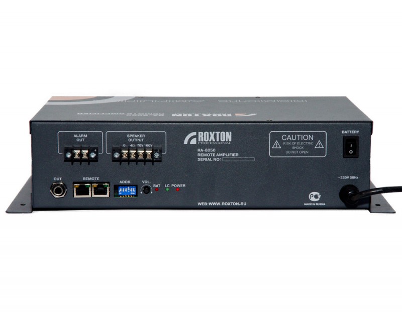 Терминальный усилитель ROXTON RA-8050 работает в составе цифро-аналоговой системы оповещения ROXTON 8000. Терминал представляет собой бюджетное комбинированное решение, позволяющее повысить возможности системы в целом. Блок имеет универсальное исполнение, может монтироваться как на стене, так и в электротехническом шкафу.