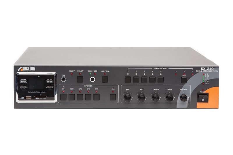 Комбинированная система оповещения ROXTON SX-240 (далее моноблок) представляет собой, совмещающий в себе функции 5-ти зонного музыкального трансляционного усилителя, блока цифровых сообщений, блока автоматического контроля линий.