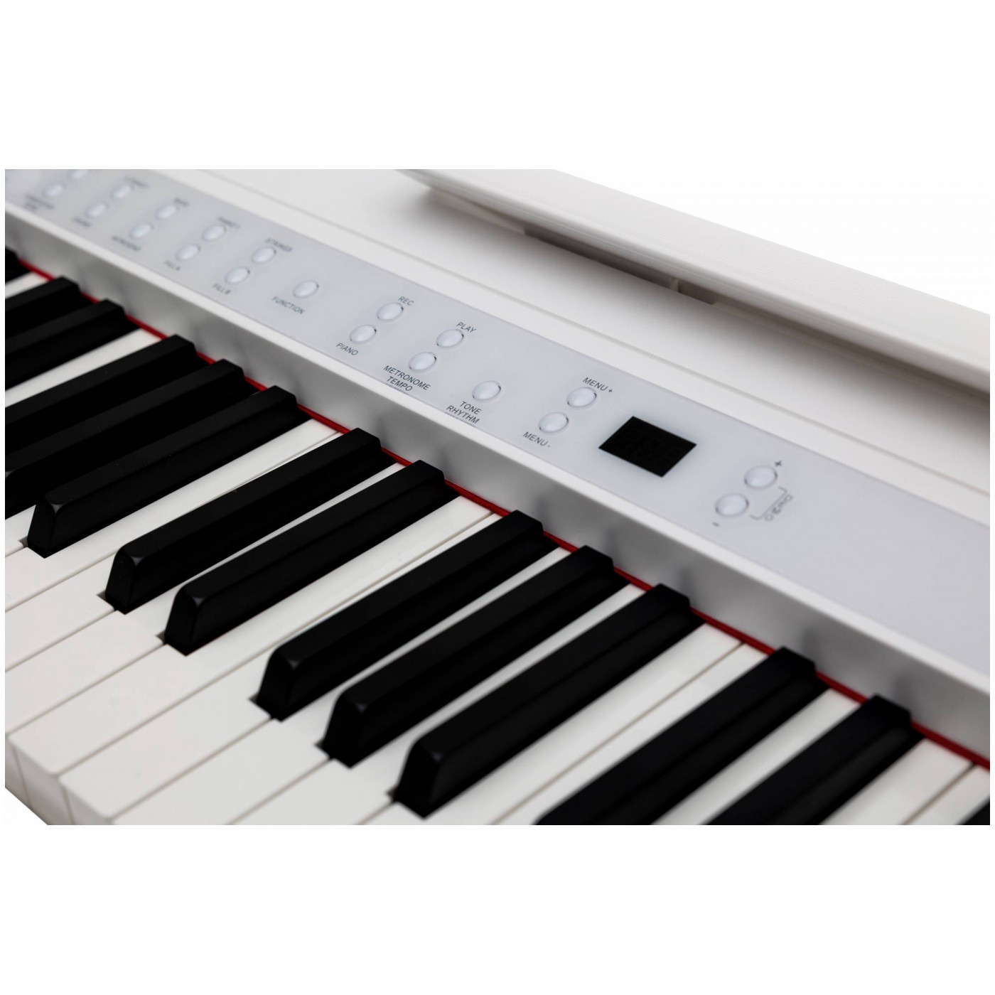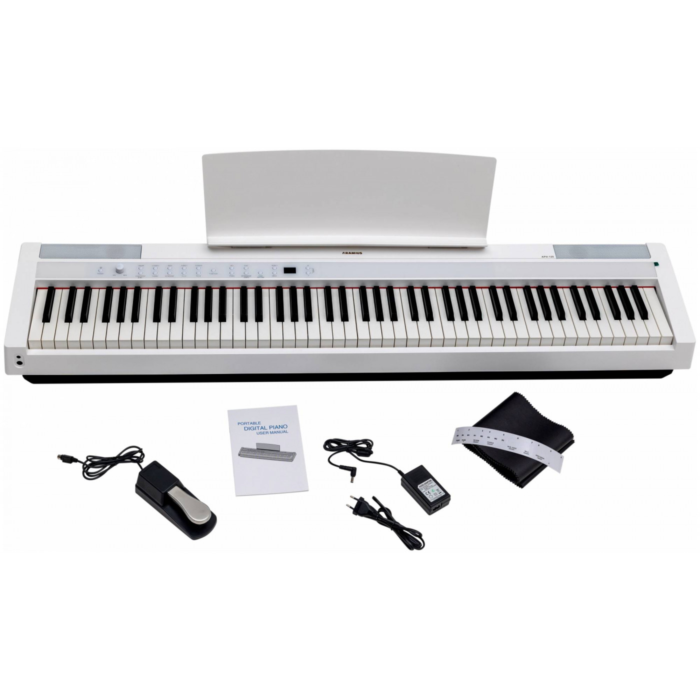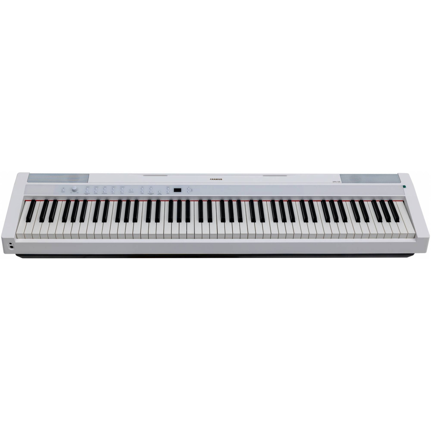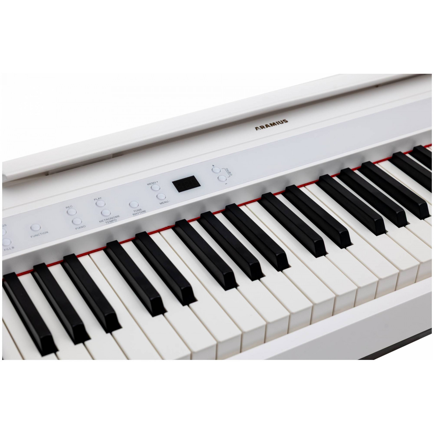 Описание:Aramius APH-120 WH - Цифровое пианино с молоточковой механикой в компактном корпусе из ABS пластика. Недорогой вариант цифрового пианино для обучения с качественными звуками. Стильный дизайн прекрасно впишется в ваш интерьер. Малый вес и компактность позволят при необходимости легко перевозить инструмент. Молоточковая механика клавиатуры хорошо передает ощущения от игры, как на настоящем пианино. Три уровня чевствительности позволяют регулировать "жесткость" клавиатуры. Благодаря наличию двух разъемов для наушников вы сможете играть в любое время суток с педагогом или просто в четыре руки, не мешая своим близким. Цифровое пианино ARAMIUS APH-120 комплектуется педалью Sustain рояльного типа, которая дает хороший тактильный контроль и к тому же уверенно лежит под ногой. Функция разделения клавиатуры (Split) позволяет выбрать разные звуки для игры левой и правой рукой. Функция наложения (Layer или Dual tone) дает возможность накладывать один звук на другой. Таким образом нажимая клавишу вы слышите сразу два звука. Используйте функцию записи, чтобы играть вживую, поверх записанного трека другим инструментом. Если вы хорошо освоили игру в одной тональности, но плохо ориентируетесь в других - используйте функцию транспонирования клавиатуры, чтобы "сдвинуть" её на нужную тональность. Таким образом вы сможете играть так, как привыкли, а звучать при этом будет та тональность, которую вы предварительно выбрали. К примеру транспонировав клавиатуру на +3 (полутона) и взяв аккорд ля-минор - вы услышите до-минор.