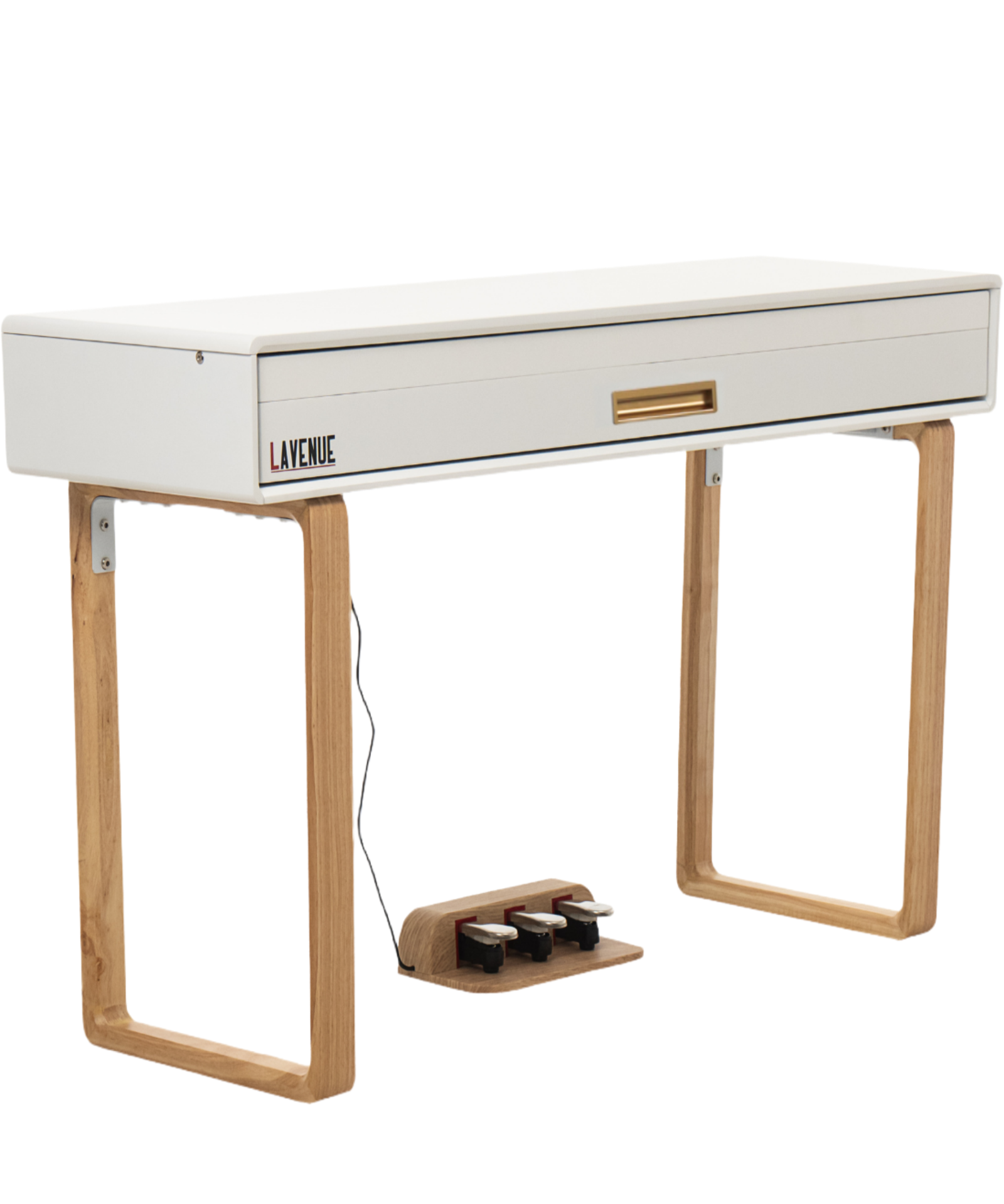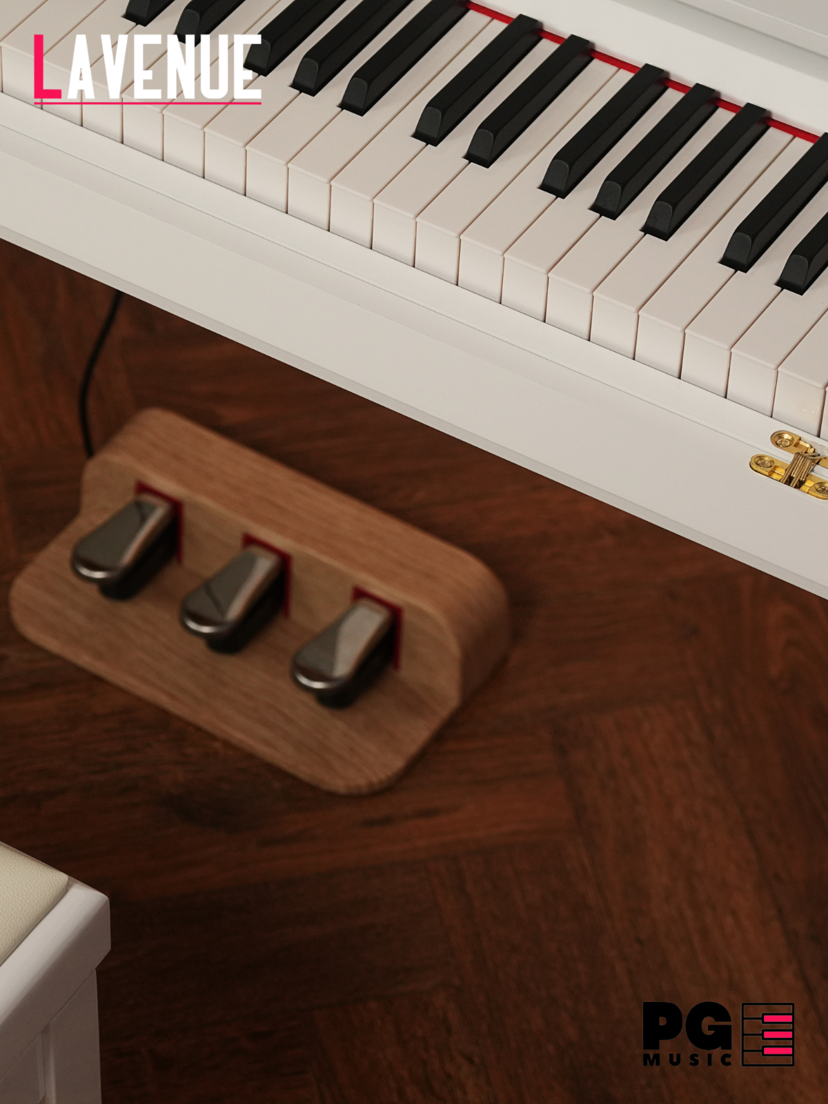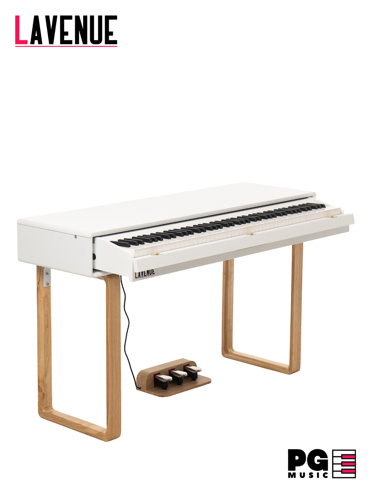 Интерьерное цифровое пианино с механизмом выдвижной клавиатуры и педальным блоком из трёх педалей рояльного типа. Корпус белого цвета выполнен в современном, эргономичном дизайне. Интерьерное цифровое пианино с механизмом выдвижной клавиатуры и педальным блоком из трёх педалей рояльного типа.