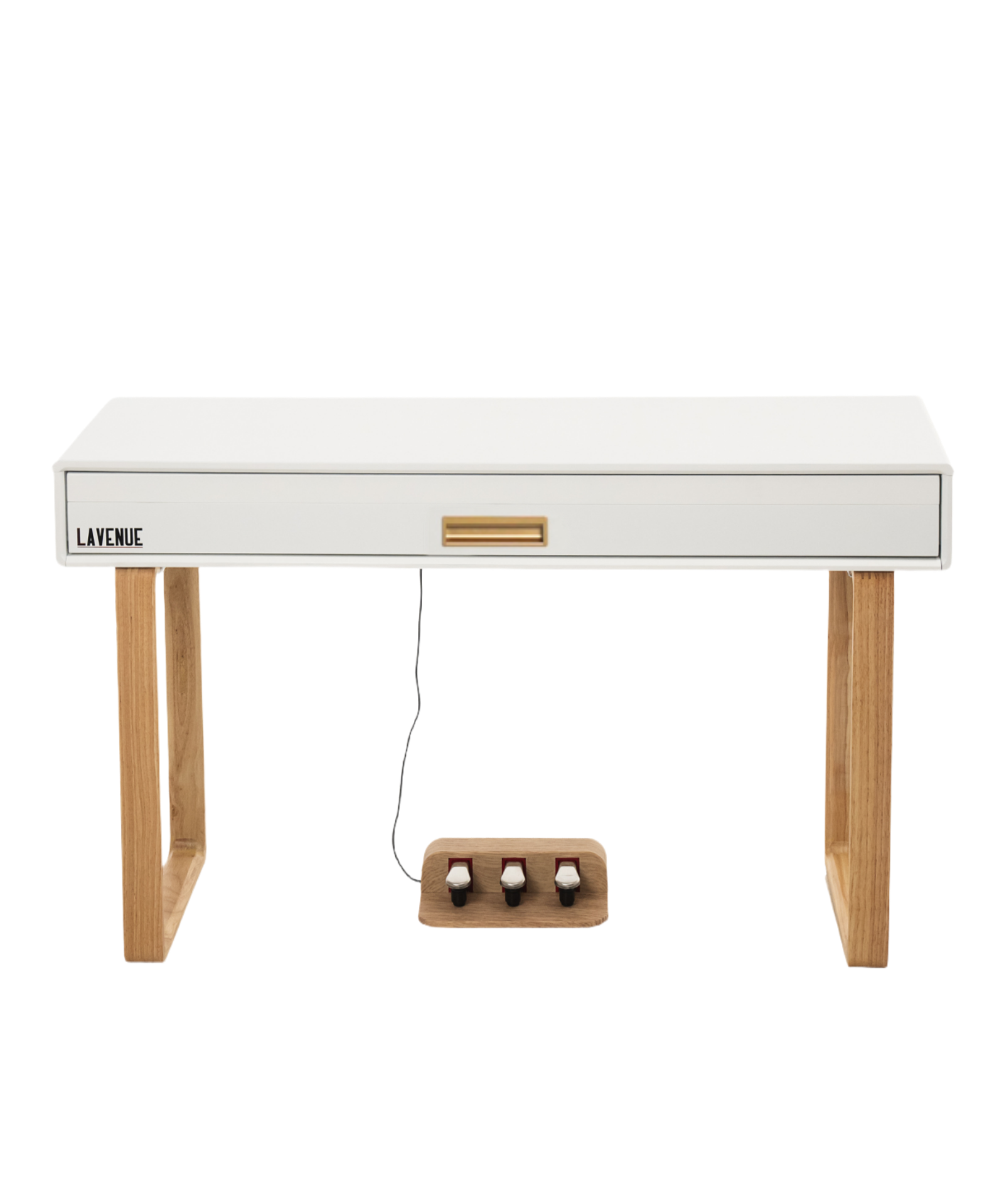 Основная идея интерьерного пианино в виде стола — это сочетание функциональности и эстетики. Отсутствие пюпитра подчеркивает минималистичный дизайн, сохраняя чистоту линий и гармонию с интерьером. Это делает инструмент больше похожим на предмет мебели, чем на традиционное пианино.