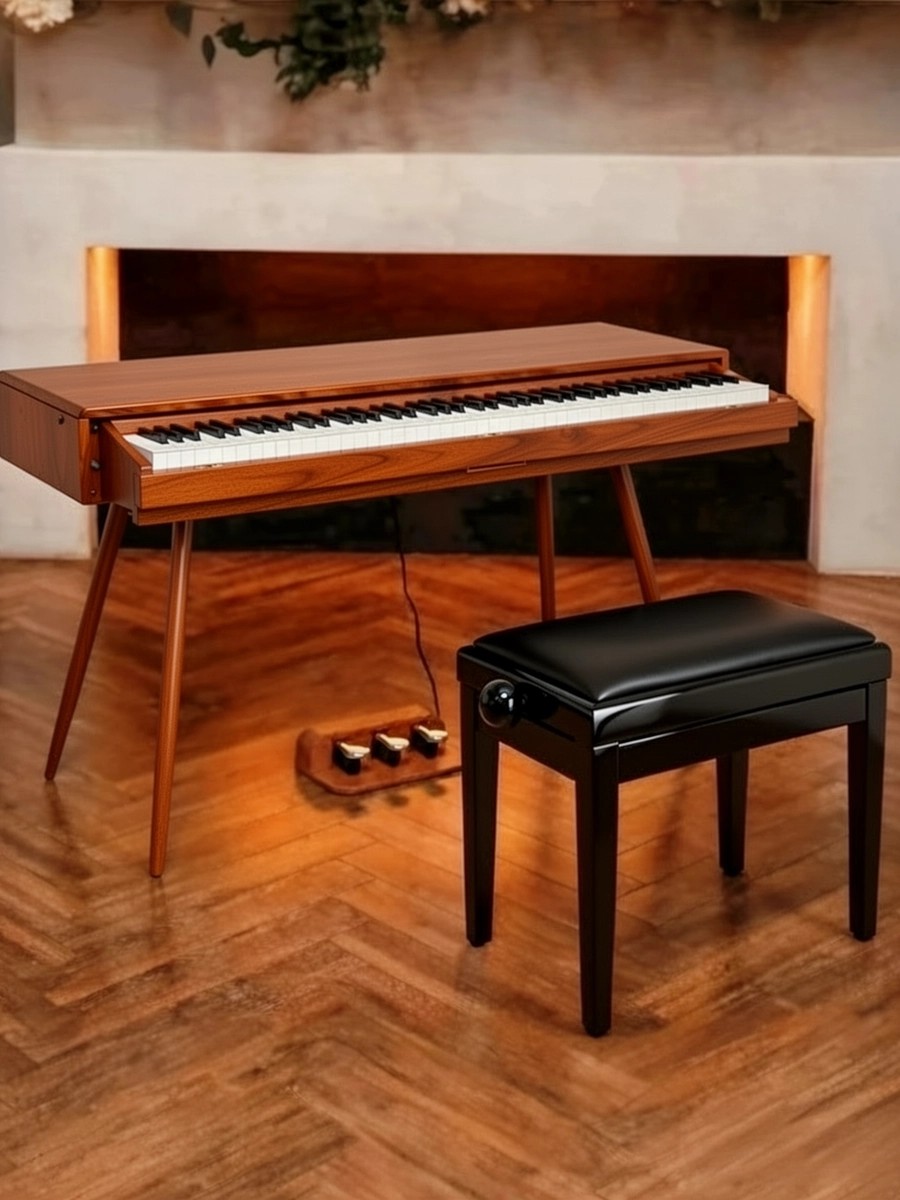 Основная идея интерьерного пианино в виде стола — это сочетание функциональности и эстетики. Отсутствие пюпитра подчеркивает минималистичный дизайн, сохраняя чистоту линий и гармонию с интерьером. Это делает инструмент больше похожим на предмет мебели, чем на традиционное пианино. В сочетании с банкеткой цифровое пианино создаёт ощущение завершенного комплекта, который стильно дополнит интерьер и обеспечит комфортные условия для музицирования. Банкетка имеет регулировку высоты, позволяя удобно расположиться исполнителю любого роста. Её стильная отделка выполнена в матовом либо глянцевом исполнении на ваш вкус, предлагая три варианта цветов: белый, чёрный и коричневый. Вы можете подобрать банкетку как в тон цвета самого инструмента, так и выбрать контрастный оттенок, добавив яркости и выразительности вашему музыкальному пространству.