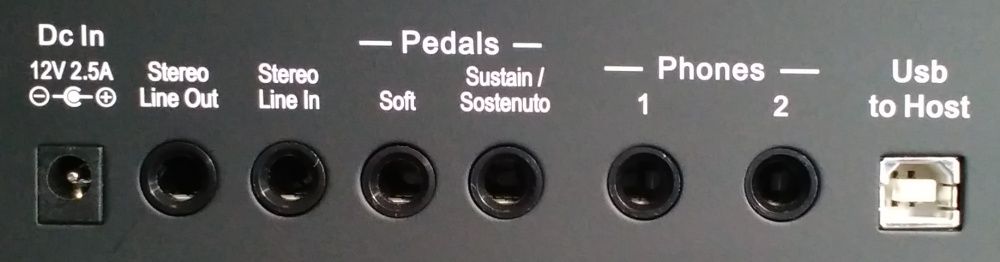 Подключения: Bluetooth, стерео выход, стерео вход, USB to Host, два гнезда педалей, питание.