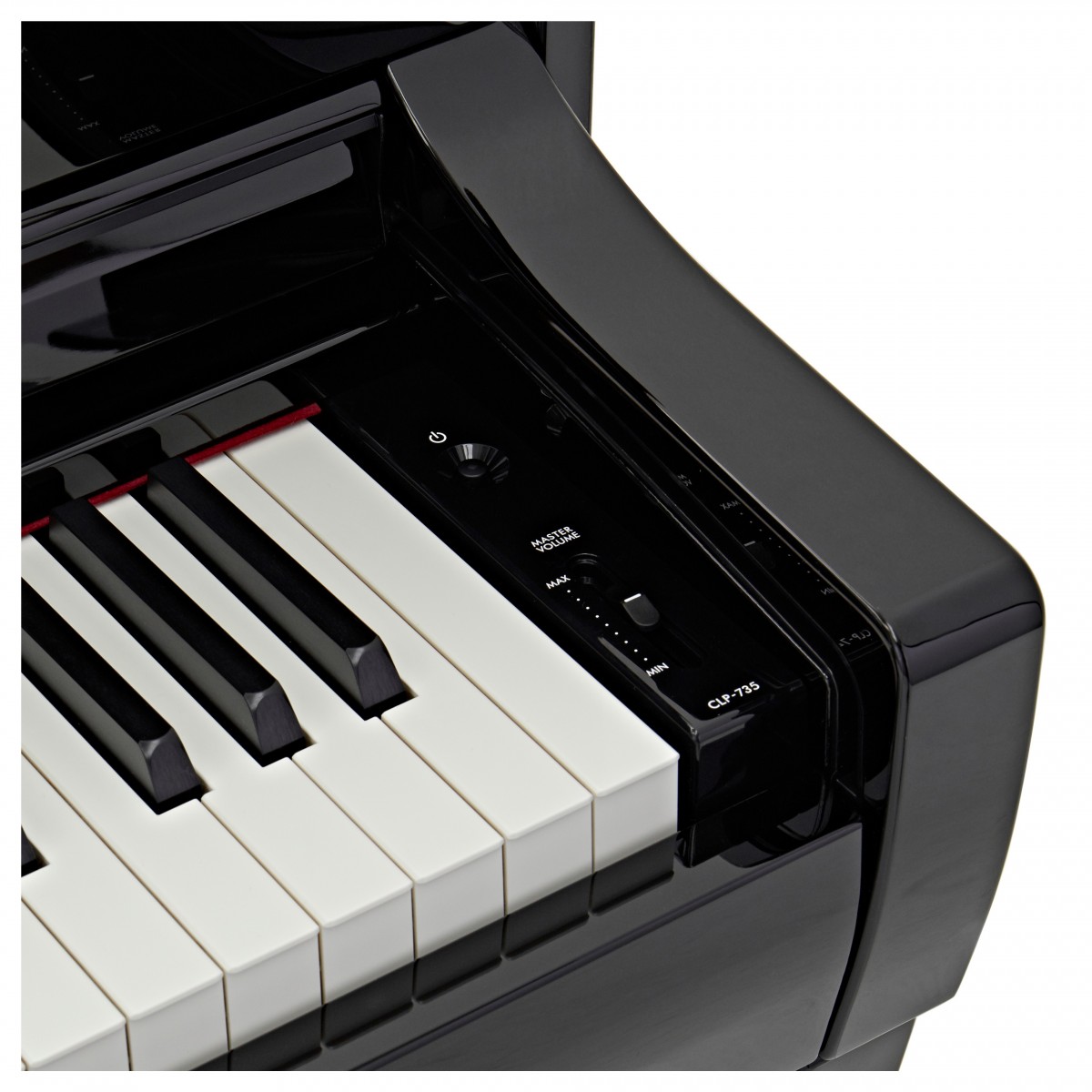 Цифровое пианино Yamaha Clavinova CLP-735В. Механика клавиатуры данной модели в точности повторяет поведение механики рояля, воспроизводя даже легкий щелчок в конце хода клавиши, характерный для акустического инструмента.