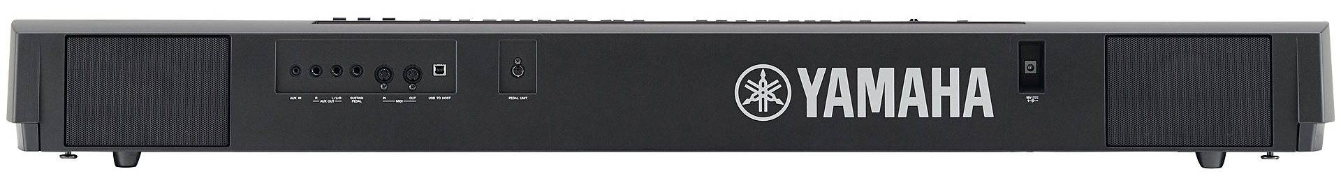 Разъемы: DC IN 16V, 2 х выхода для наушников, 1 х сустейн педаль, 1 для блока педалей, MIDI вход/выход, АUX вход/выход, USB
